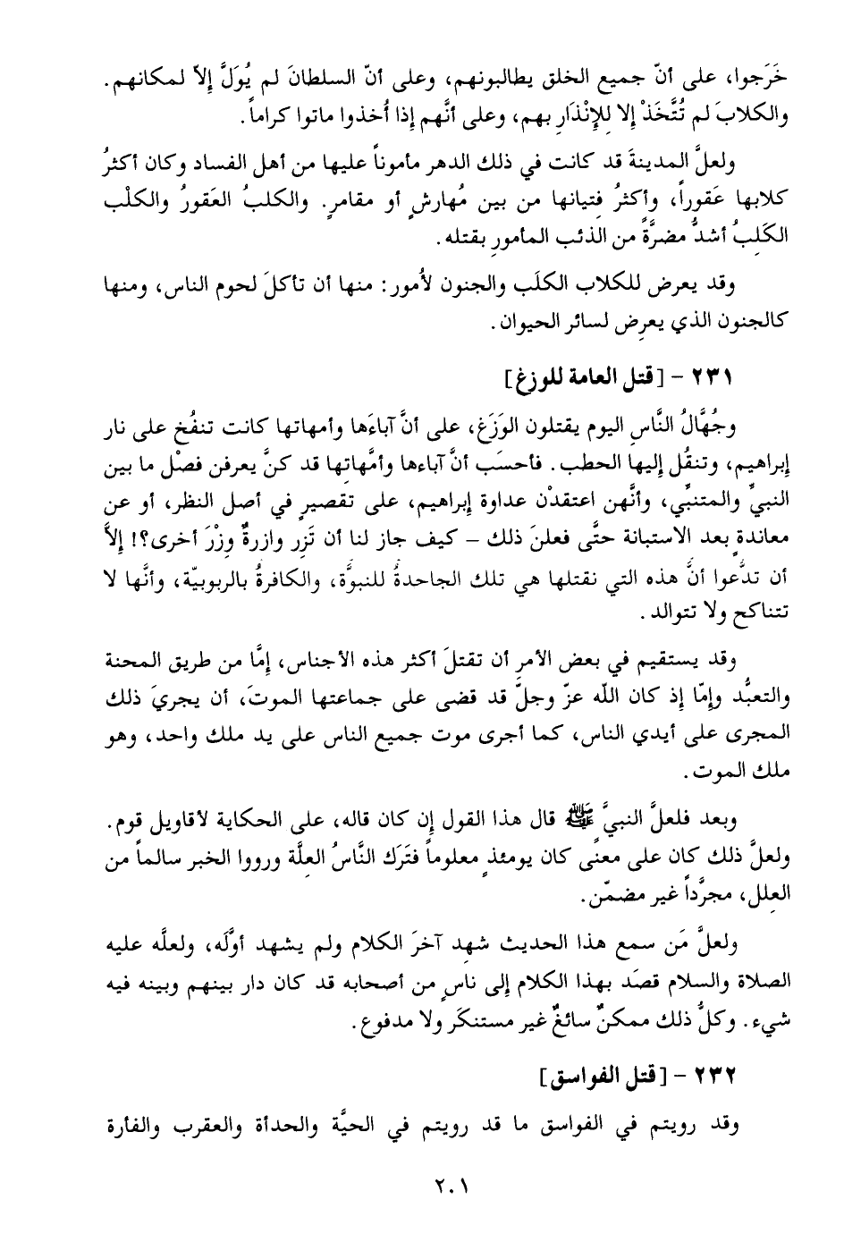 وقد يستقيم في بعض الأمر أن تقتل أكثر هذه الأجناس، إمّا من طريق المحنة والتعبّد وإمّا إذ كان الله عزّ وجلّ قد قضى على جماعتها الموت، أن يجري ذلك المجرى على أيدي الناس، كما أجرى موت جميع الناس على يد ملك واحد، وهو ملك الموت.