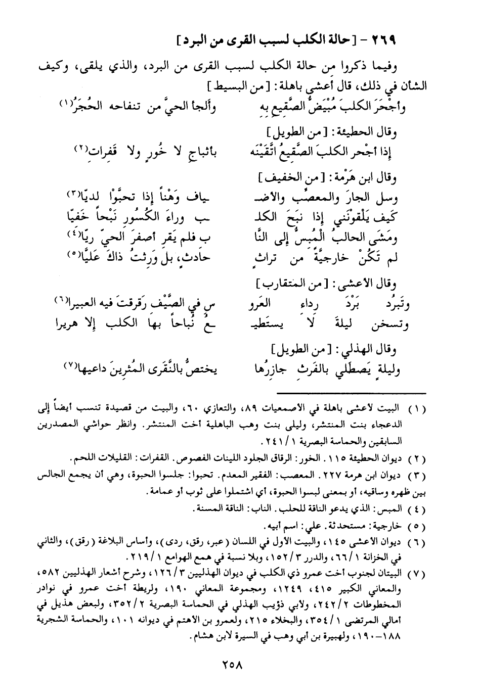 وفيما ذكروا من حالة الكلب لسبب القرى من البرد، والذي يلقى، وكيف الشأن في ذلك، قال أعشى باهلة: [من البسيط]