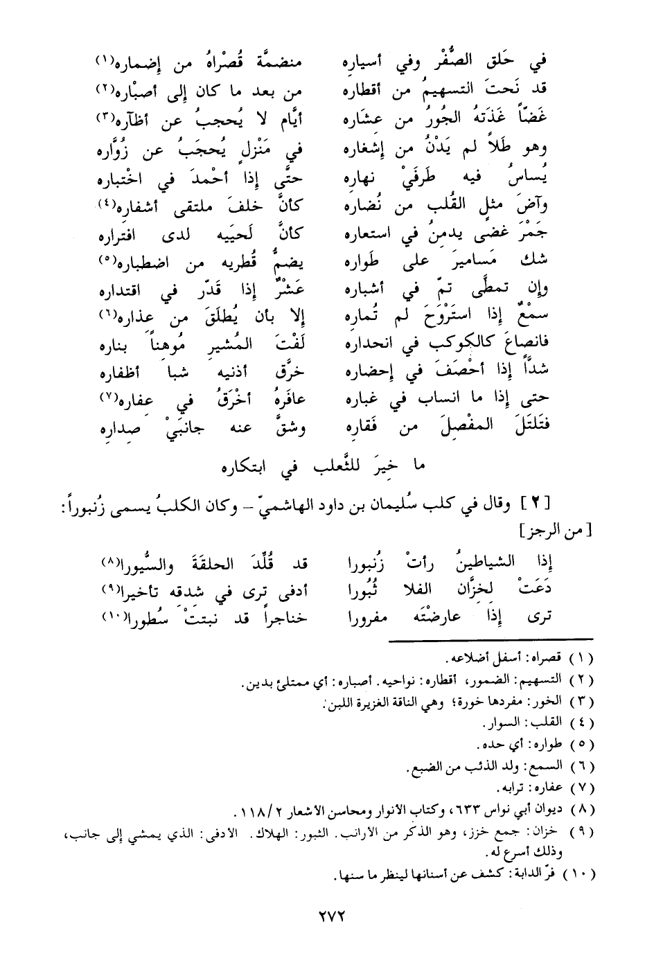 [2] وقال في كلب سليمان بن داود الهاشميّ- وكان الكلب يسمى زنبورا:
