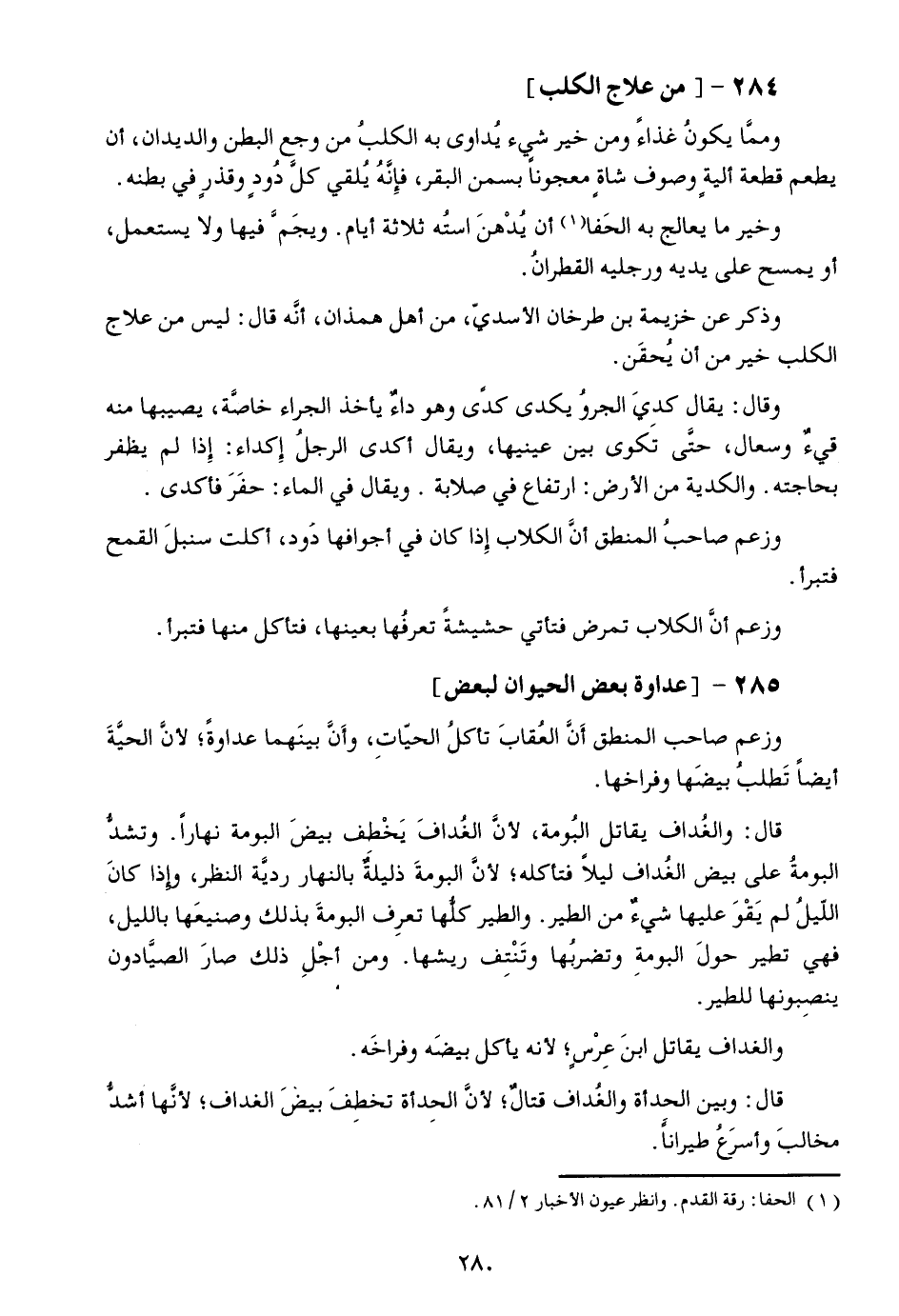 وزعم صاحب المنطق أنّ العقاب تأكل الحيّات، وأنّ بينهما عداوة؛ لأنّ الحيّة أيضا تطلب بيضها وفراخها.
