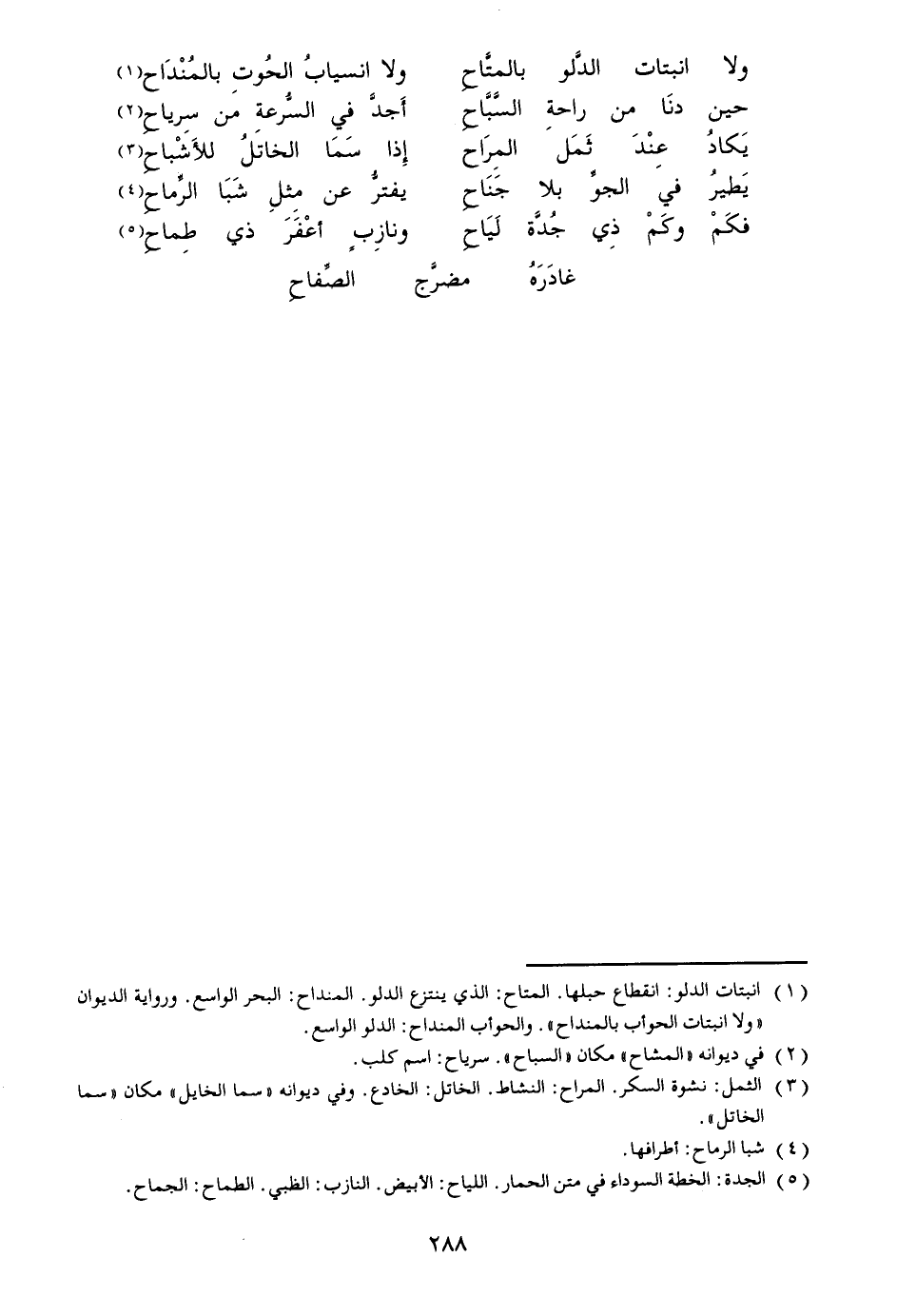 ولا انبتات الدّلو بالمتّاح ... ولا انسياب الحوت بالمنداح «1»