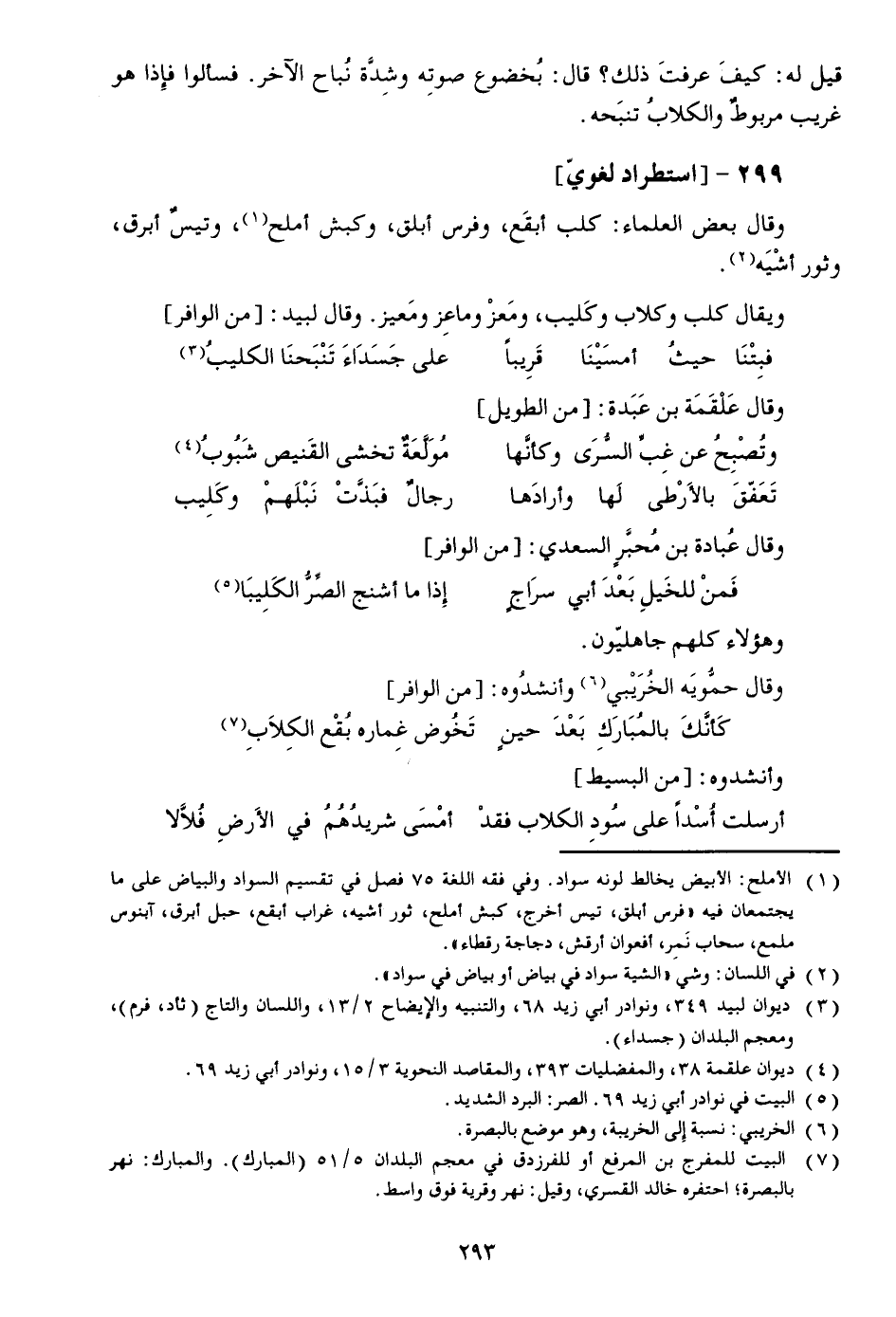 وقال بعض العلماء: كلب أبقع، وفرس أبلق، وكبش أملح «1» ، وتيس أبرق، وثور أشيه «2» .