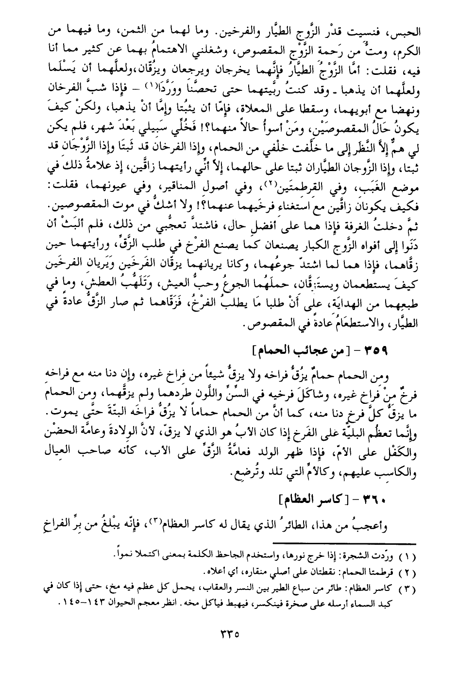 وأعجب من هذا، الطائر الذي يقال له كاسر العظام «3» ، فإنّه يبلغ من برّ الفراخ