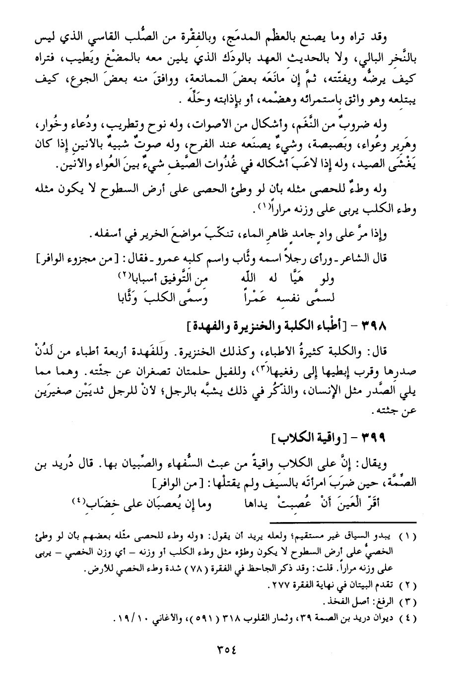 ويقال: إنّ على الكلاب واقية من عبث السّفهاء والصّبيان بها. قال دريد بن الصّمّة، حين ضرب امرأته بالسيف ولم يقتلها: [من الوافر]