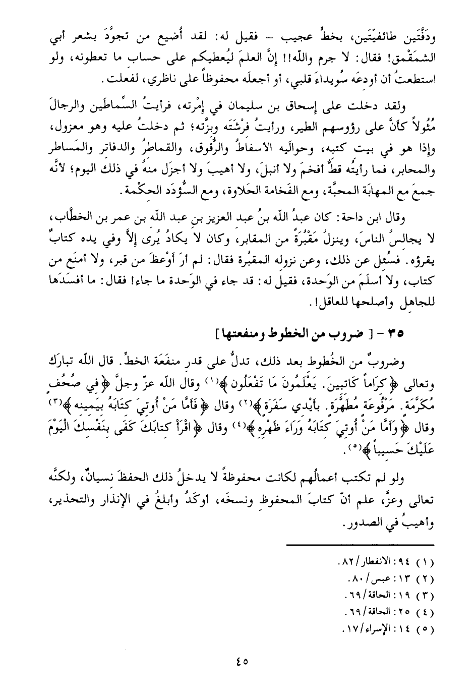 وضروب من الخطوط بعد ذلك، تدلّ على قدر منفعة الخطّ. قال الله تبارك وتعالى كِراماً كاتِبِينَ. يَعْلَمُونَ ما تَفْعَلُونَ