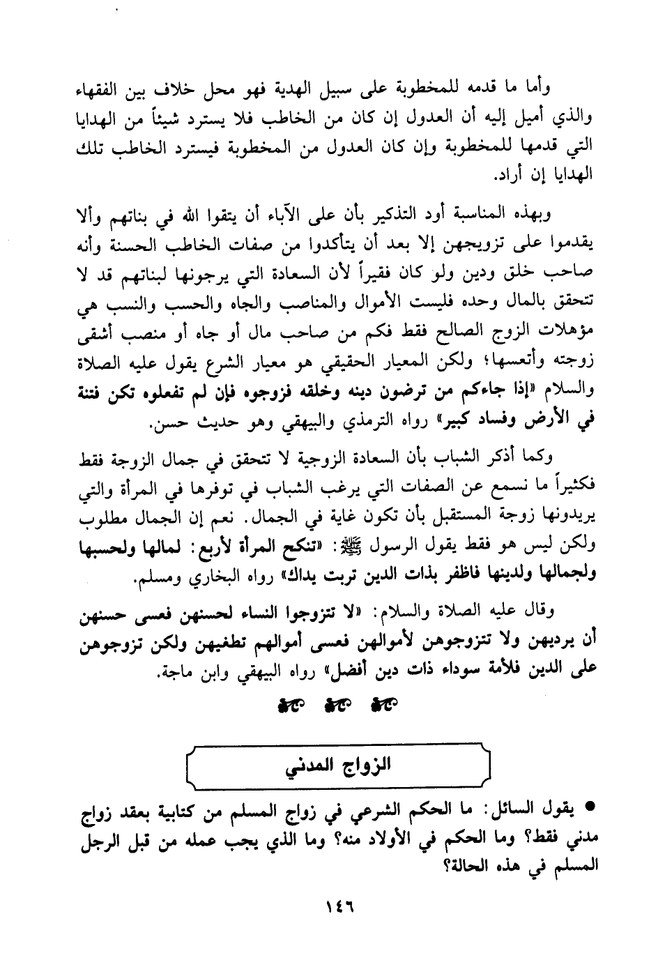 وكما أذكر الشباب بأن السعادة الزوجية لا تحقق في جمال الزوجة فقط فكثيراً ما نسمع عن الصفات التي يرغب الشباب في توفرها في المرأة والتي يريدونها زوجة المستقبل بأن تكون غايةً في الجمال. نعم إن الجمال مطلوب ولكن ليس هو فقط يقول الرسول صلى الله عليه وسلم: (تنكح المرأة لأربع: لمالها ولحسبها ولجمالها ولدينها فاظفر بذات الدين تربت يداك) رواه البخاري ومسلم ..