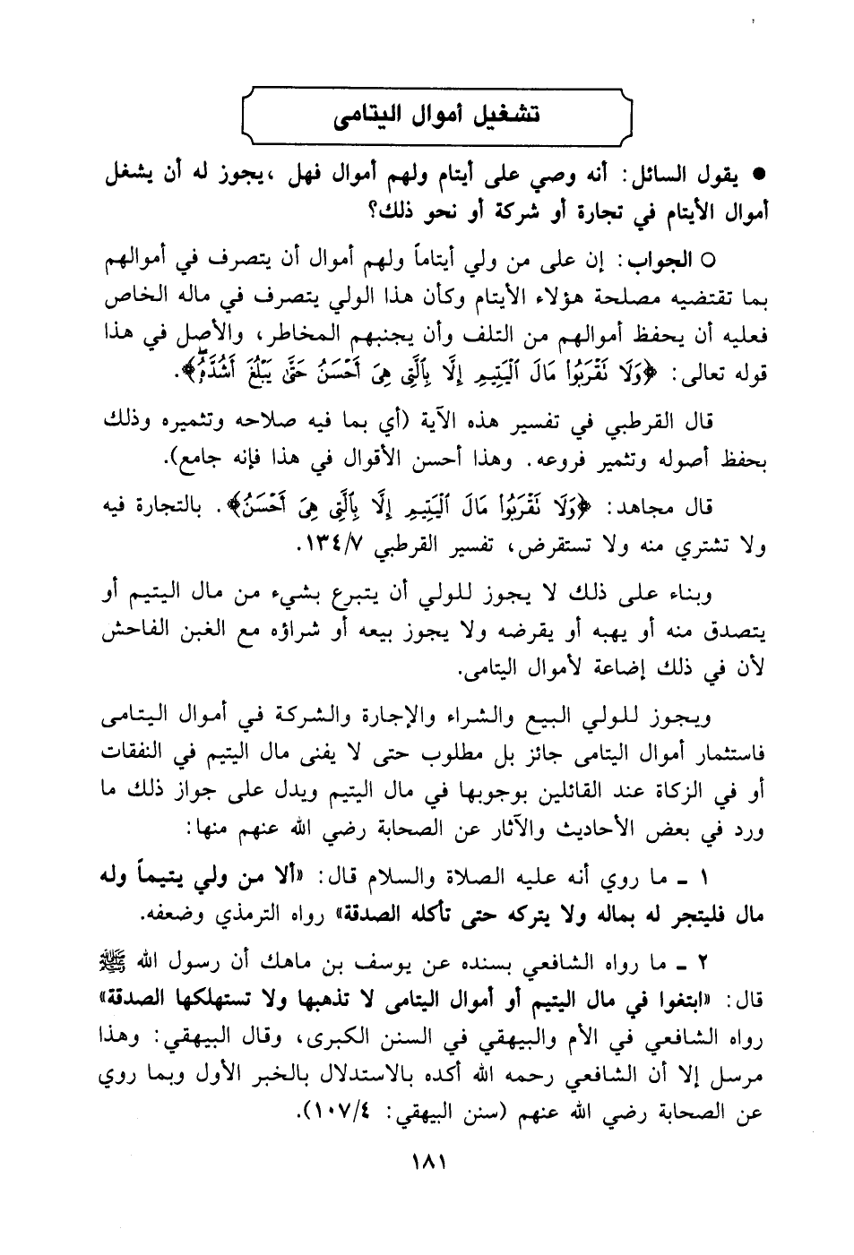قال القرطبي في تفسير هذه الآية: [أي بما فيه صلاحه وتثميره وذلك بحفظ أصوله وتثمير فروعه. وهذا أحسن الأقوال في هذا فإنه جامع].
