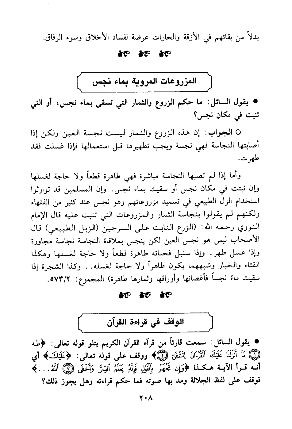 يقول السائل: ما حكم الزروع والثمار التي تسقى بماء نجس أو التي تنبت في مكان نجس؟