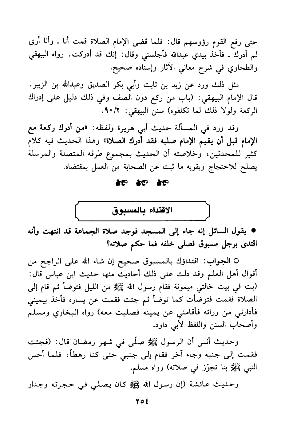 ومثل ذلك ورد عن زيد بن ثابت وأبي بكر الصديق وعبد الله بن الزبير، قال الإمام البيهقي: [باب من ركع دون الصف وفي ذلك دليل على إدراك الركعة ولولا ذلك لما تكلفوه] سنن البيهقي 2/ 90.