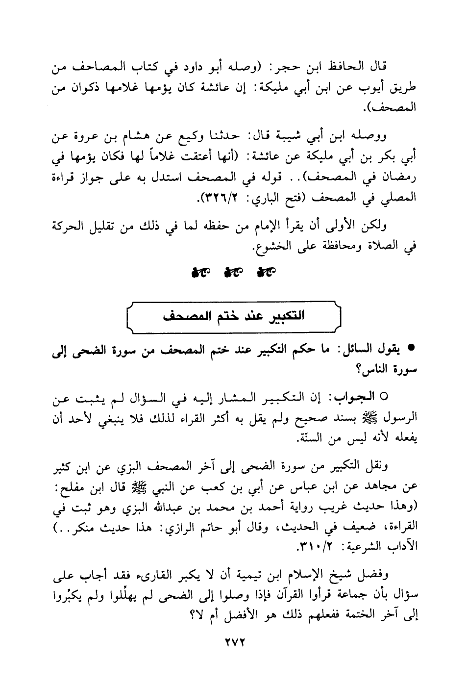 يقول السائل: ما حكم التكبير عند ختم المصحف من سورة الضحى إلى سورة الناس؟