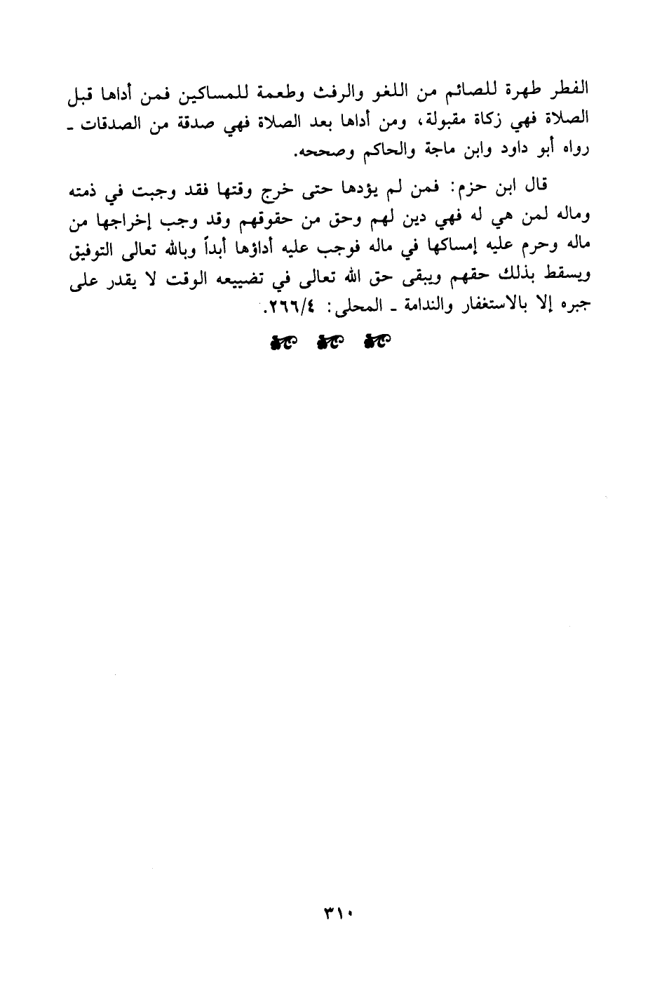 الفطر طهرة لصلائم من اللغو والرفث وطعمة للمساكين فمن أداها قبل الصلاة فهي زكاة مقبولة ومن أداها بعد الصلاة فهي صدقة من الصدقات) رواه أبو داود وابن ماجة والحاكم وصححه