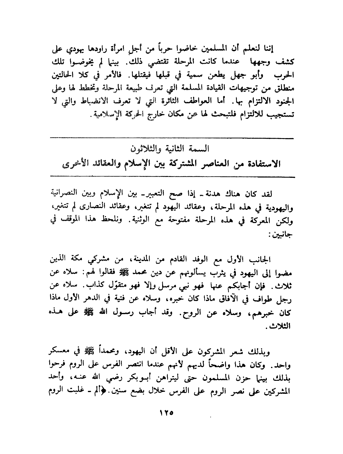 لقد كان هناك هدنة -إذا صح التعبير- بين الإسلام وبين النصرانية واليهودية في هذه المرحلة، وعقائد اليهود لم تتغير، وعقائد النصارى لم تتغير، ولكن المعركة في هذه المرحلة مفتوحة مع الوثنية. ونلحظ هذا الموقف في جانبين: