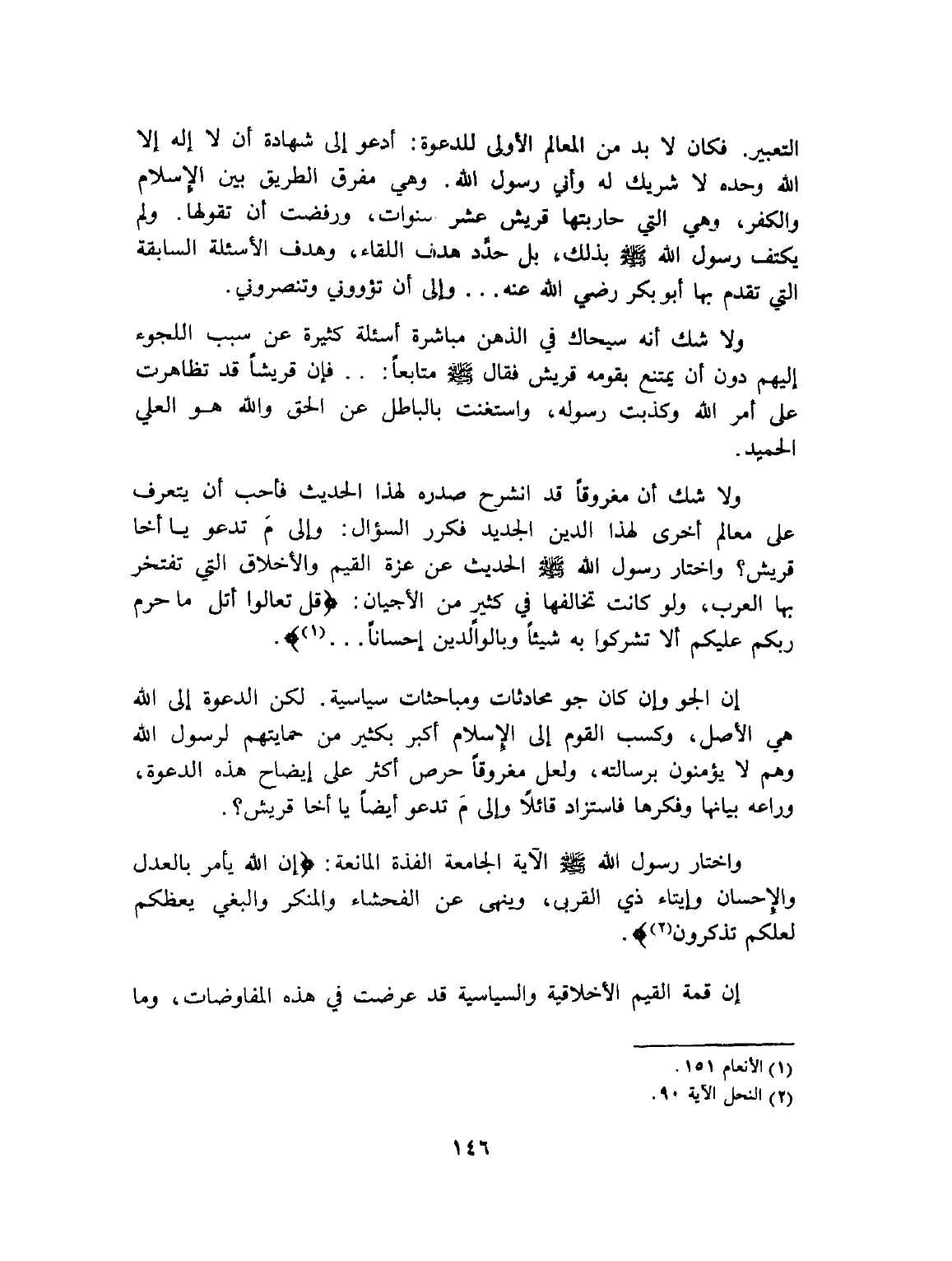 واختار رسول الله - صلى الله عليه وسلم - الآية الجامعة الفذة المانعة: {إن الله - صلى الله عليه وسلم - أمر بالعدل والإحسان وإيتاء ذي القربى وينهى عن الفحشاء والمنكر والبغي يعظكم لعلكم تذكرون (¬2)}.