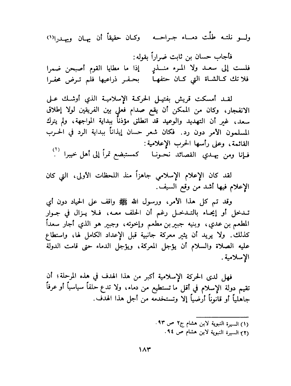 (¬1) السيرة النبوية لابن هشام ج 2 ص 93.