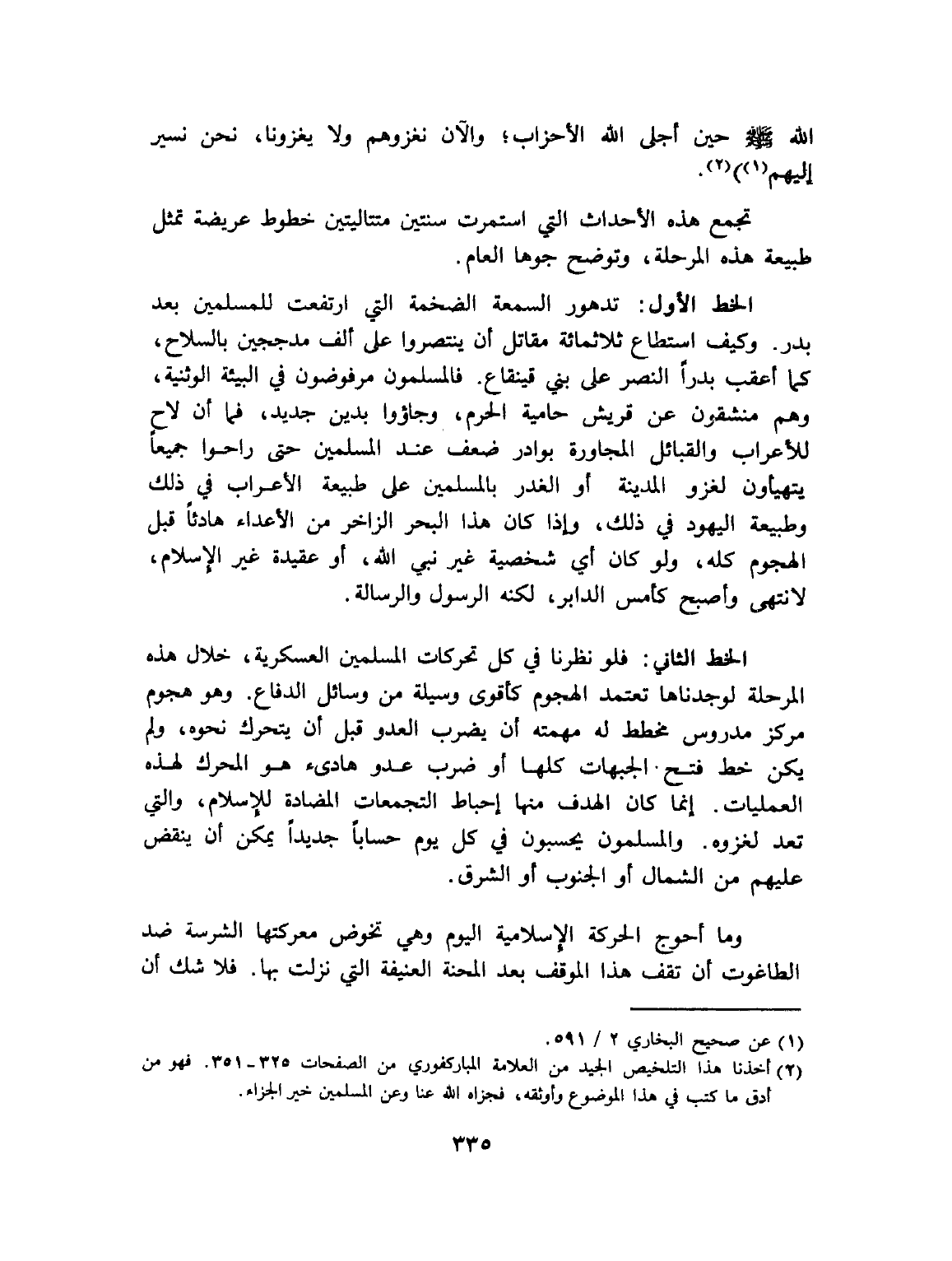 الله - صلى الله عليه وسلم - حين أجلى الله الأحزاب، والآن نغزوهم ولا يغزونا، نحن نسير إليهم (¬1)) (¬2).