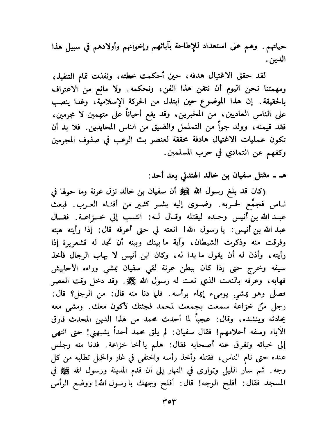 هـ - مقتل سفيان بن خالد الهندلي بعد أحد: