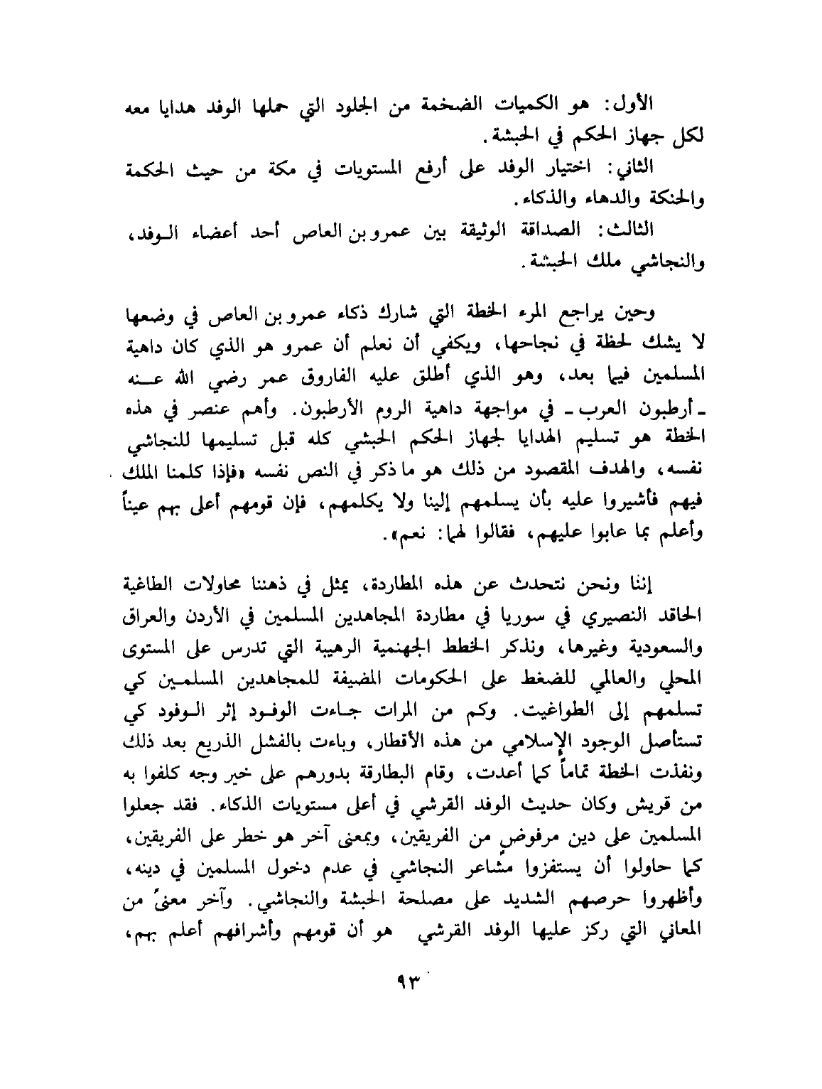 الثالث: الصداقة الوثيقة بين عمرو بن العاص أحد أعضاء الوفد، والنجاشي ملك الحبشة.