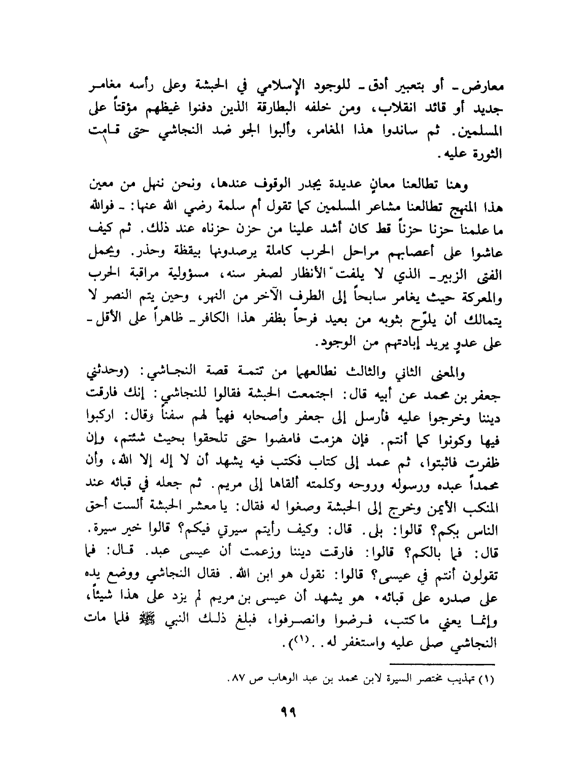 (¬1) تهذيب مختصر السيرة لابن محمد بن عبد الوهاب ص 87.