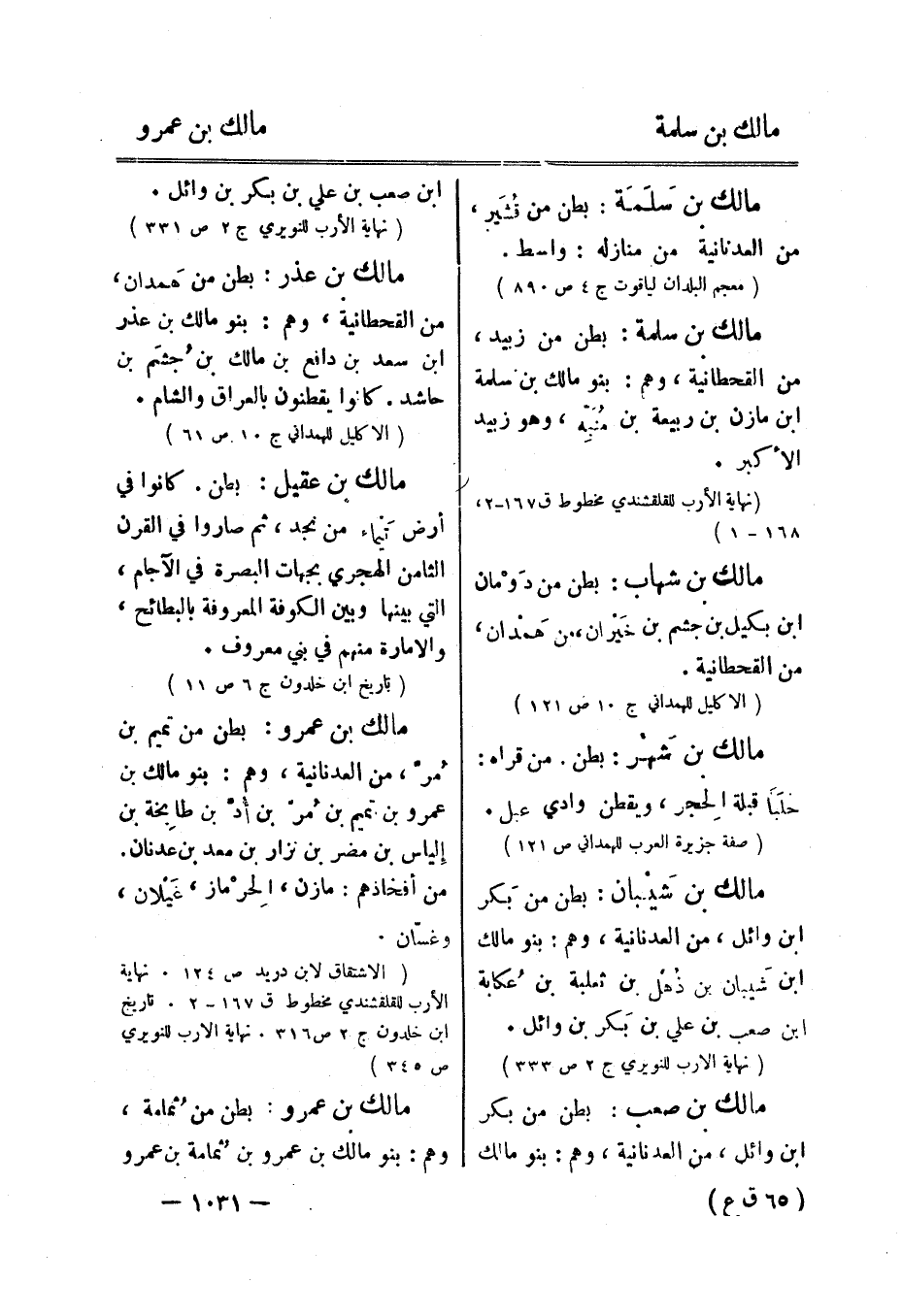 (الاشتقاق لابن دريد ص 124. نهاية الأرب للقلقشندي مخطوط ق 167- 2. تاريخ ابن خلدون ج 2 ص 316. نهاية الارب للنويري ص 345)