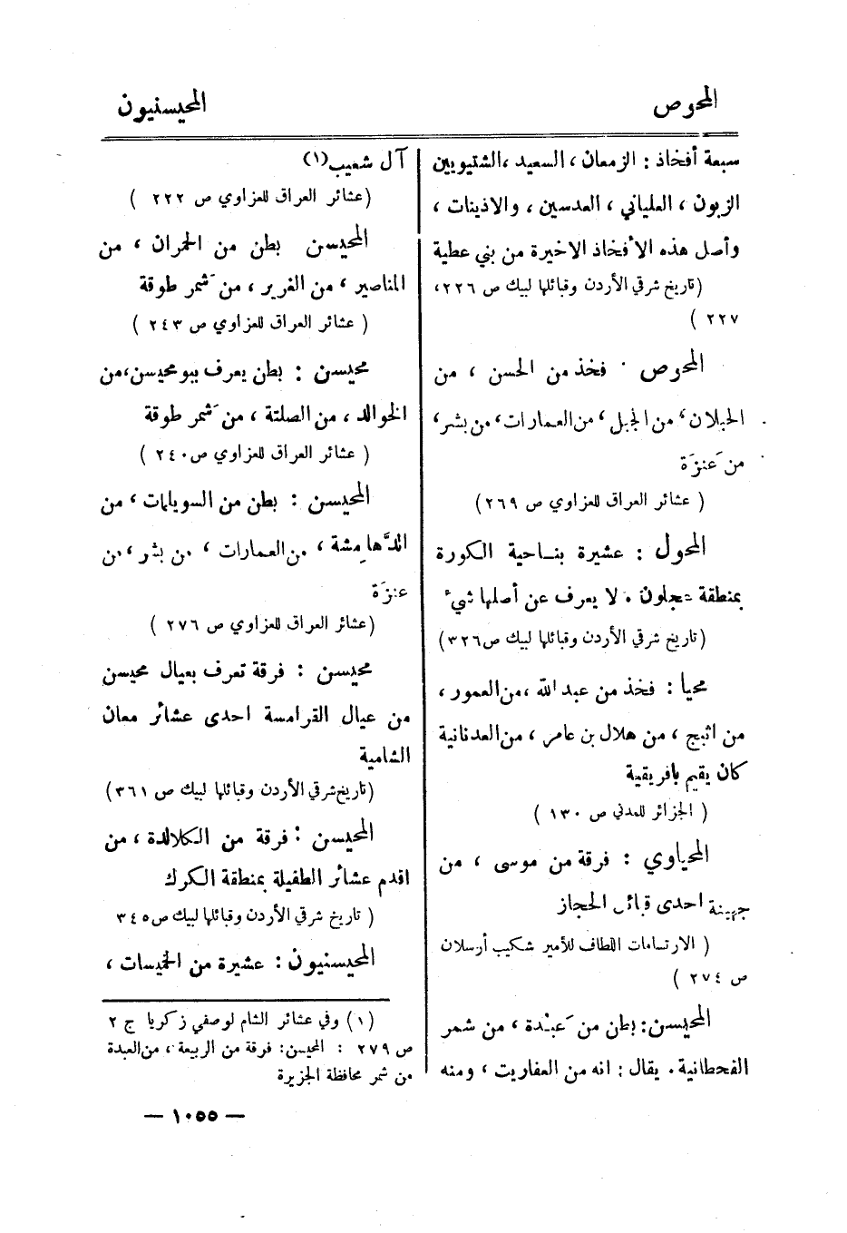 [1] وفي عشائر الشام لوصفي زكريا ج 2 ص 279: المحيسن: فرقة من الربيعة، من العبدة من شمر محافظة الجزيرة