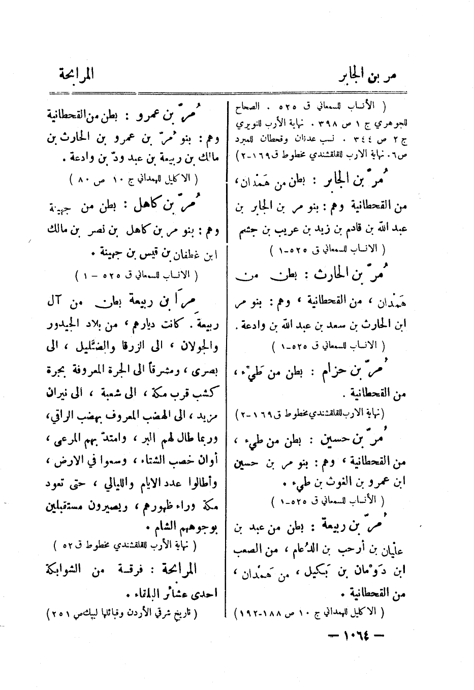 (الأنساب للسمعاني ق 525. الصحاح للجوهري ج 1 ص 398. نهاية الأرب للنويري ج 2 ص 344. نسب عدنان وقحطان للمبرد ص 6. نهاية الارب للقلقشندي مخطوط ق 169- 2)