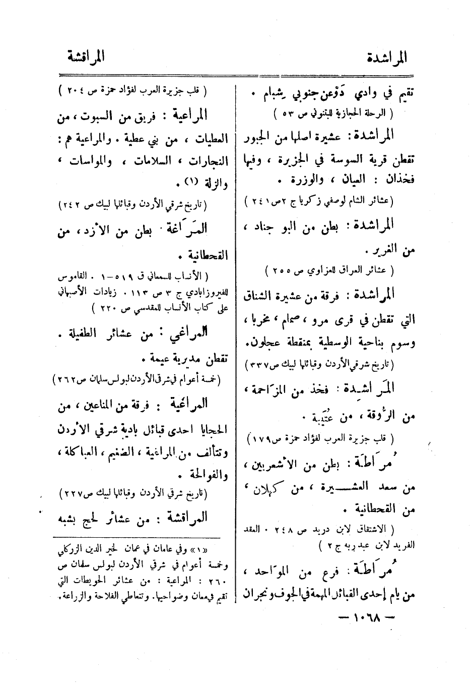 [1] وفي عامان في عمان لخير الدين الزركلي وخمسة أعوام في شرقي الأردن لبولس سلمان ص 260: المراعية: من عشائر الحويطات التي تقيم في معان وضواحيها. وتتعاطي الفلاحة والزراعة.