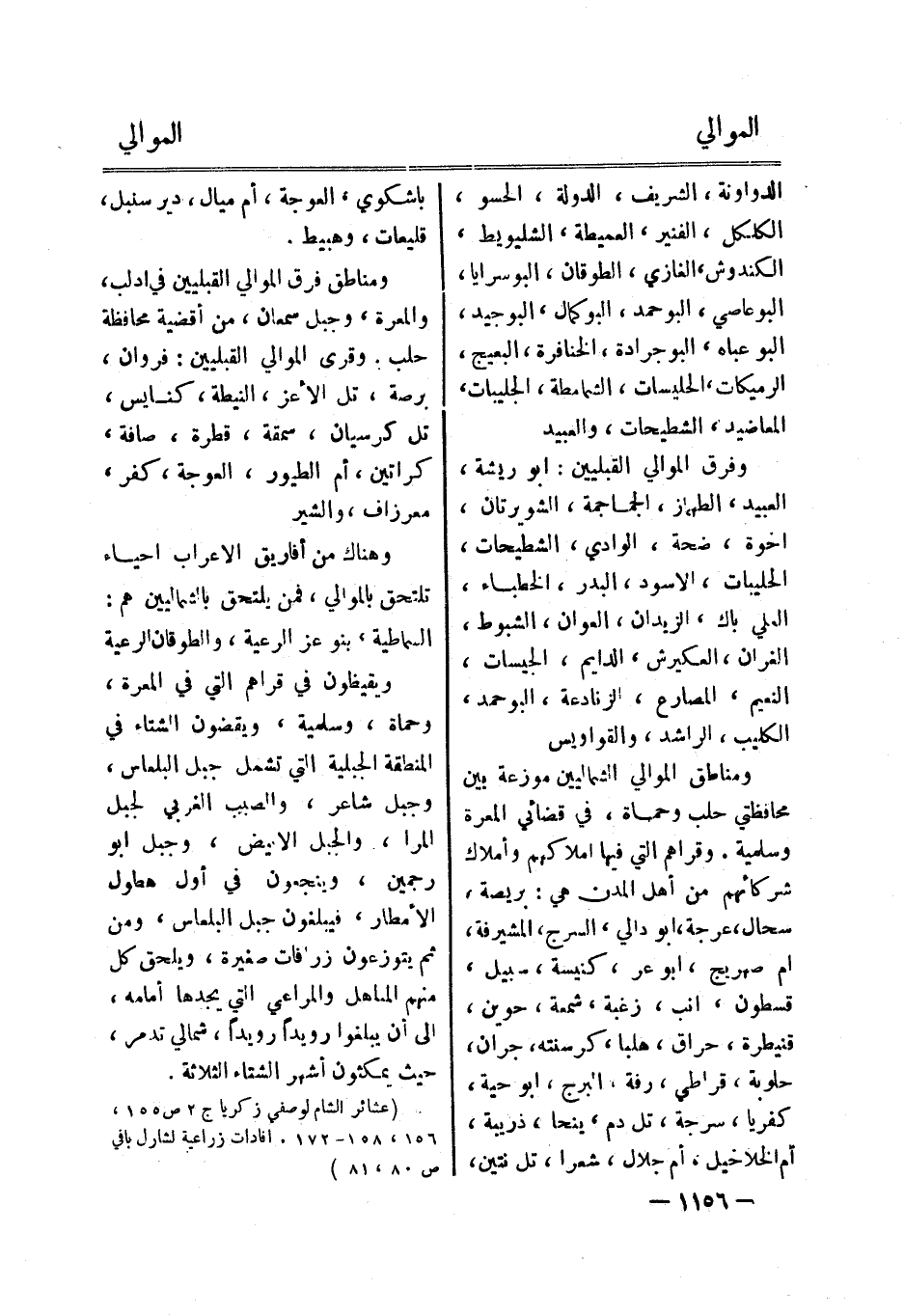 (عشائر الشام لوصفي زكريا ج 2 ص 155، 156، 158- 172. افادات زراعية لشارل بافي ص 80، 81)