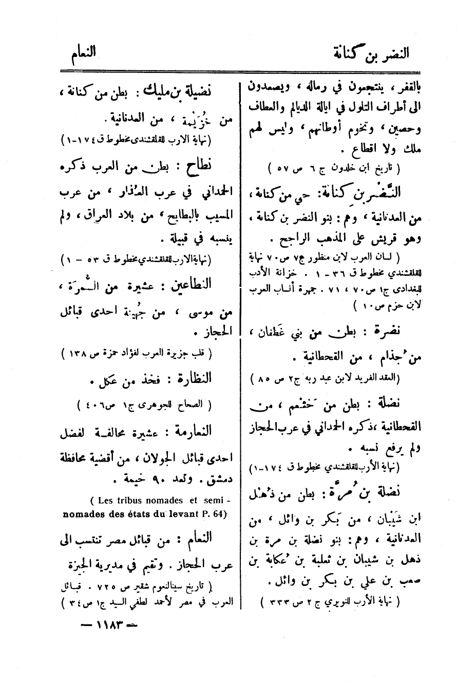 (لسان العرب لابن منظور ج 7 ص 70 نهاية للقلقشندي مخطوط ق 36- 1. خزانة الأدب للبغدادي ج 1 ص 70، 71. جمهرة أنساب العرب لابن حزم ص 10)