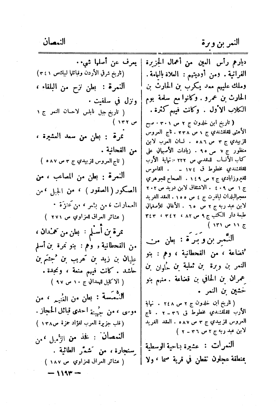 (تاريخ ابن خلدون ج 2 ص 301. صبح الأعشى للقلقشندي ج 1 ص 338. تاج العروس للزبيدي ج 3 ص 586. لسان العرب لابن منظور ج 7 ص 95. زيادات الأصبهاني على كتاب الأنساب للمقدسي ص 222. نهاية الأرب للقلقشندي مخطوط ق 174-. القاموس للفيروزآبادي ج 2 ص 149. الصحاح للجوهري ج 1 ص 409. الاشتقاق لابن دريد ص 202 معجم البلدان لياقوت ج 4 ص 155. العقد الفريد لابن عبد ربه ج 2 ص 65. الأغاني للأصفهاني طبعة دار الكتب ج 9 ص 82، 342، 343 ج 11 ص 131)