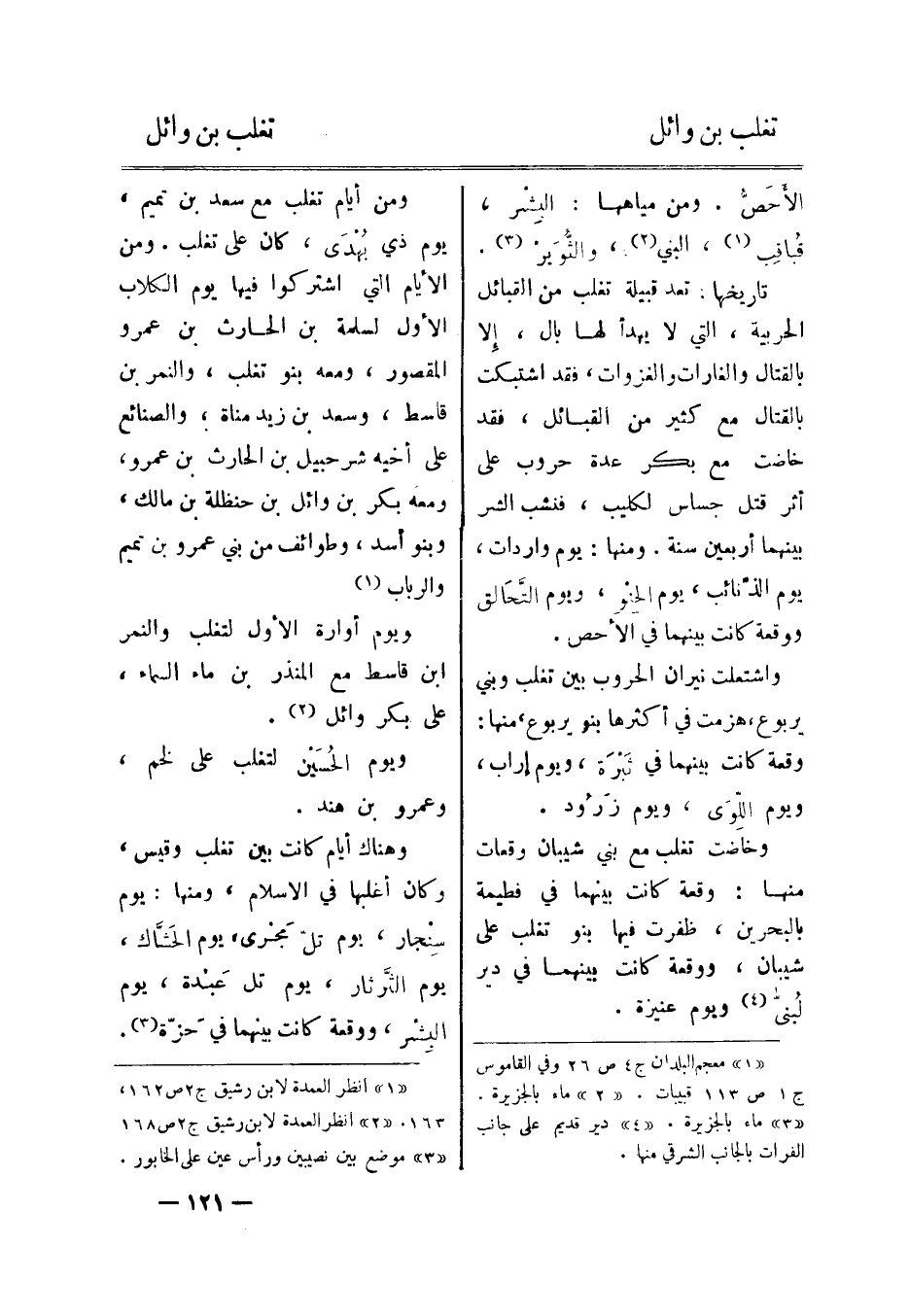وهناك أيام كانت بين تغلب وقيس، وكان أغلبها في الإسلام، ومنها: يوم سنجار، يوم تلّ مجرى، يوم الحشّاك، يوم الثّرثار، يوم تل عبدة، يوم البشر، ووقعة كانت بينهما في حزّة [7] .