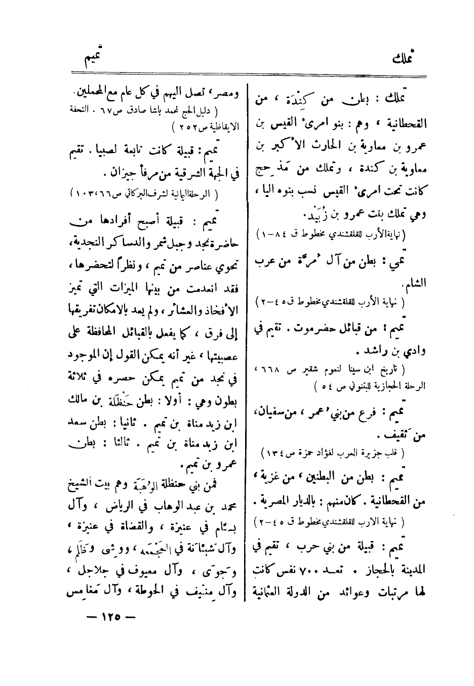 قبيلة أصبح أفرادها من حاضرة نجد وجبل شمر والدساكر النجدية، نحوي عناصر من تميم، ونظرا لتحضرها، فقد انعدمت من بينها الميزات التي تميز الأفخاذ والعشائر، ولم يعد بالإمكان تفريقها إلى فرق، كما يفعل بالقبائل المحافظة على عصبيتها، غير أنه يمكن القول إن الموجود في نجد من تميم يمكن حصره في ثلاثة بطون وهي: أولا: بطن حنظلة بن مالك ابن زيد مناة بن تميم. ثانيا: بطن سعد ابن زيد مناة بن تميم. ثالثا: بطن عمرو بن تميم.