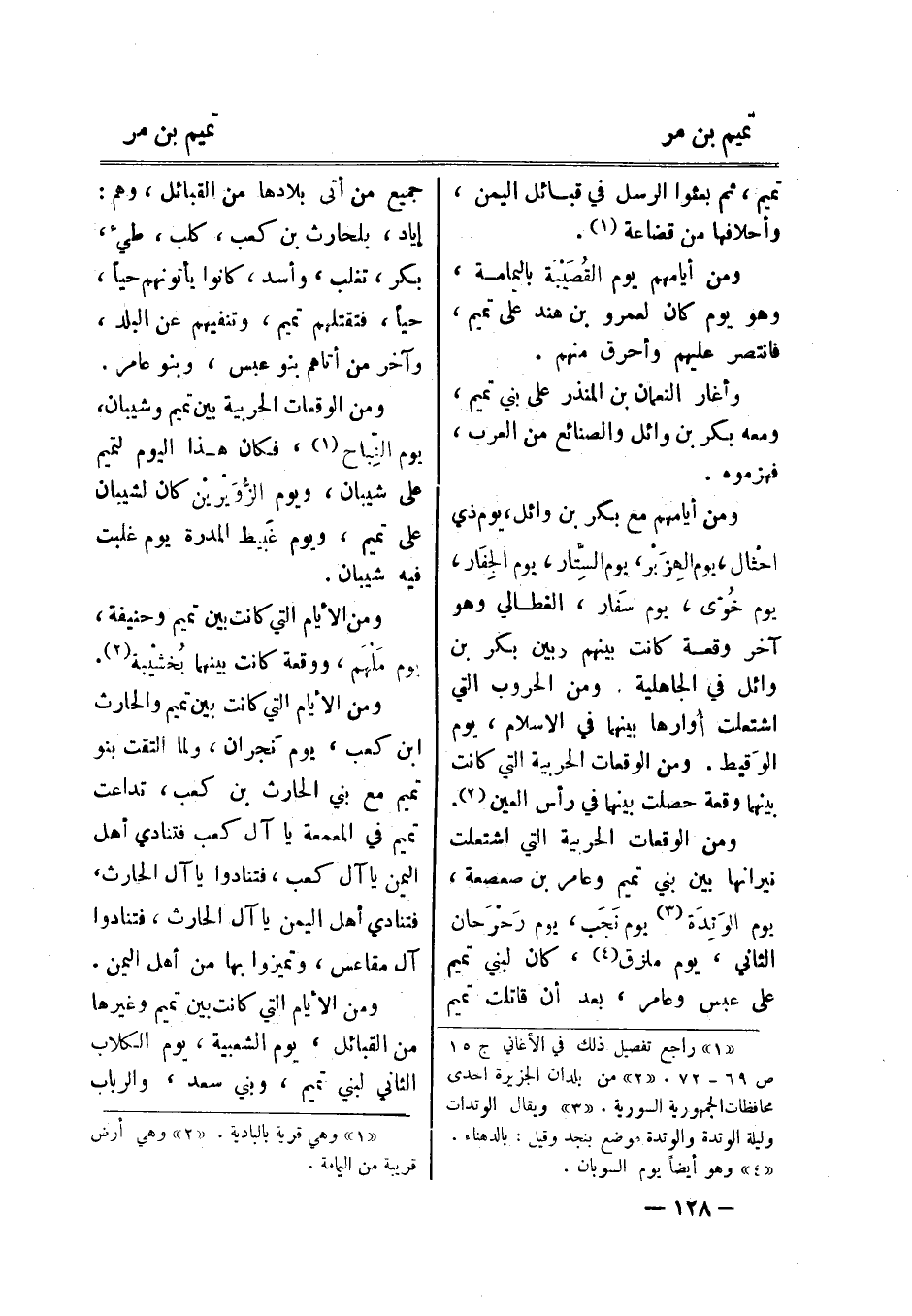 ومن الوقعات الحربية بين تميم وشيبان، يوم النّباح [5] ، فكان هذا اليوم لتميم على شيبان، ويوم الزّويرين كان لشيبان على تميم، ويوم غبيط المدرة يوم غلبت فيه شيبان.