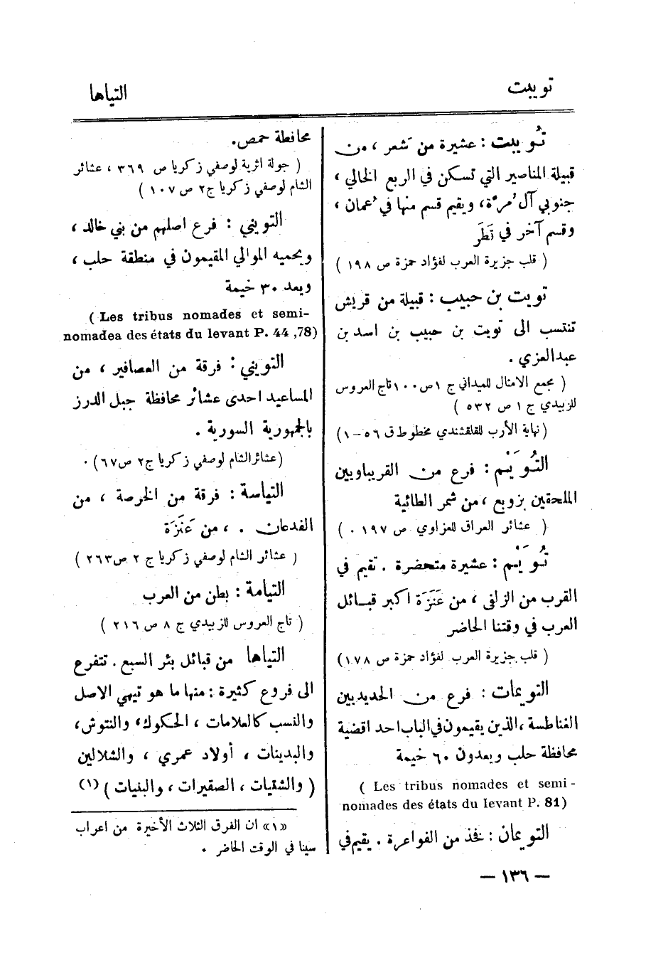 (جولة اثرية لوصفي زكريا ص 369، عشائر الشام لوصفي زكريا ج 2 ص 107)