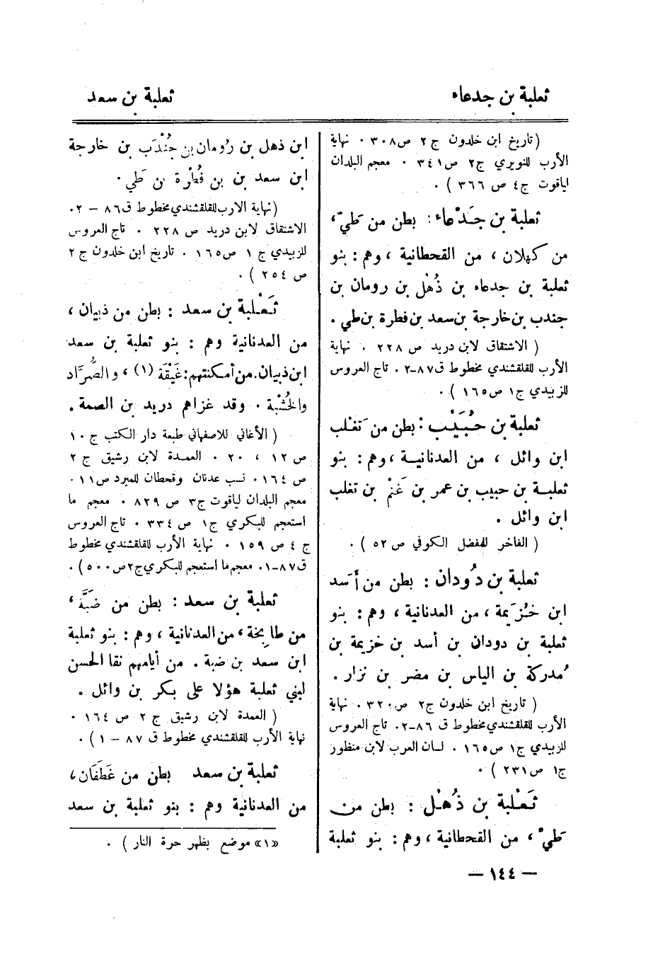 بطن من ضبّة، من طابخة، من العدنانية، وهم: بنو ثعلبة ابن سعد بن ضبة. من أيامهم نقا الحسن لبني ثعلبة هؤلا على بكر بن وائل.