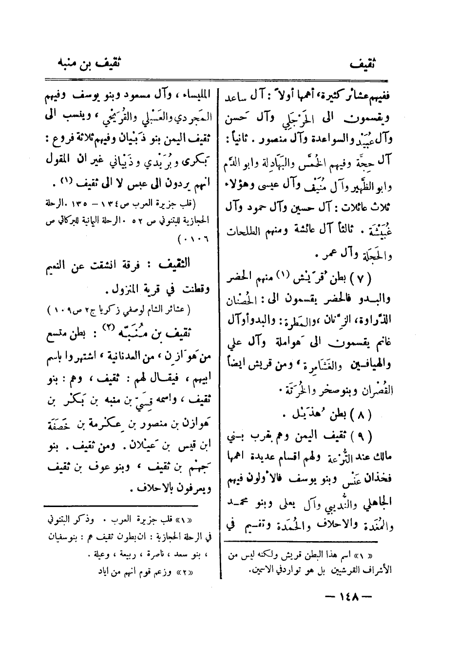 [2] قلب جزيرة العرب. وذكر البتنوني في الرحلة الحجازية: ان بطون ثقيف هم: بنو سفيان، بنو سعد، ناصرة، ربيعة، وعيلة.