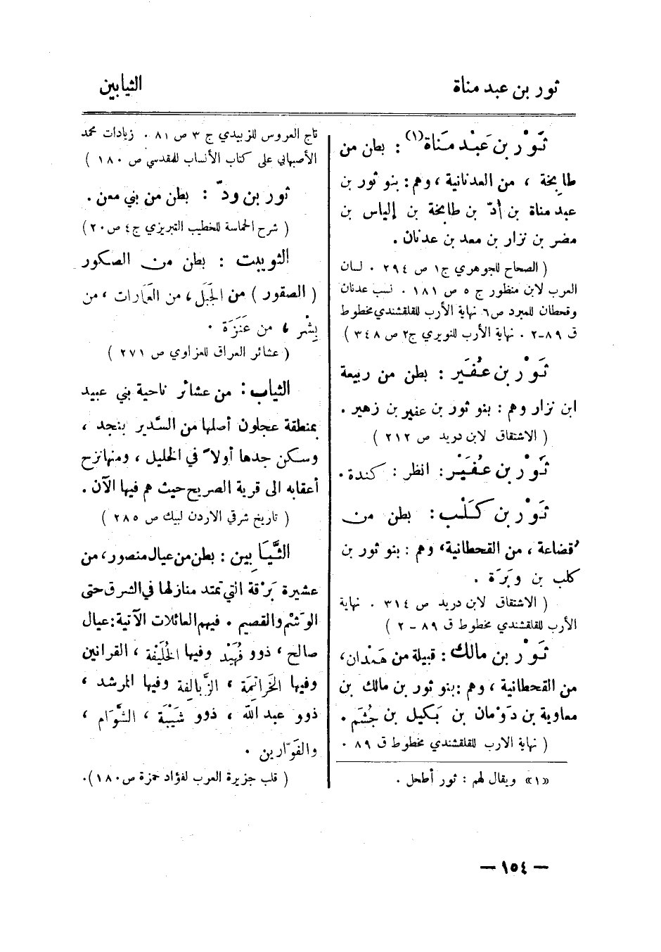 [1] : بطن من طابخة، من العدنانية، وهم: بنو ثور بن عبد مناة بن أدّ بن طابخة بن إلياس بن مضر بن نزار بن معد بن عدنان.