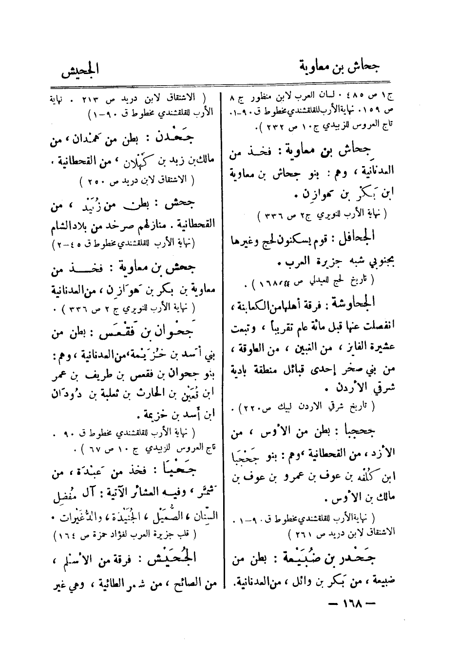 ج 1 ص 485. لسان العرب لابن منظور ج 8 ص 159. نهاية الأرب للقلقشندي مخطوط ق 90- 1.