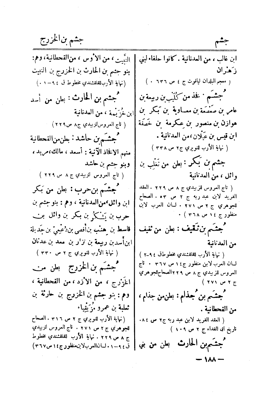 بنو جشم بن الحارث بن الخزرج بن النبيت (نهاية الأرب للقلقشندي مخطوط ق 94- 1.)