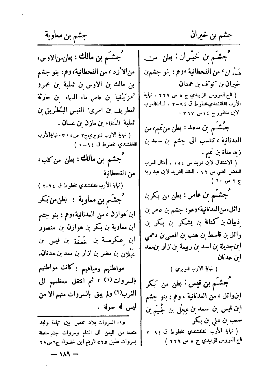 بطن من بكر ابن هوازن، من العدنانية، وهم: بنو جشم ابن معاوية بن بكر بن هوازن بن منصور ابن عكرمة بن خصفة بن قيس بن عيلان بن مضر بن نزار بن معد بن عدنان.