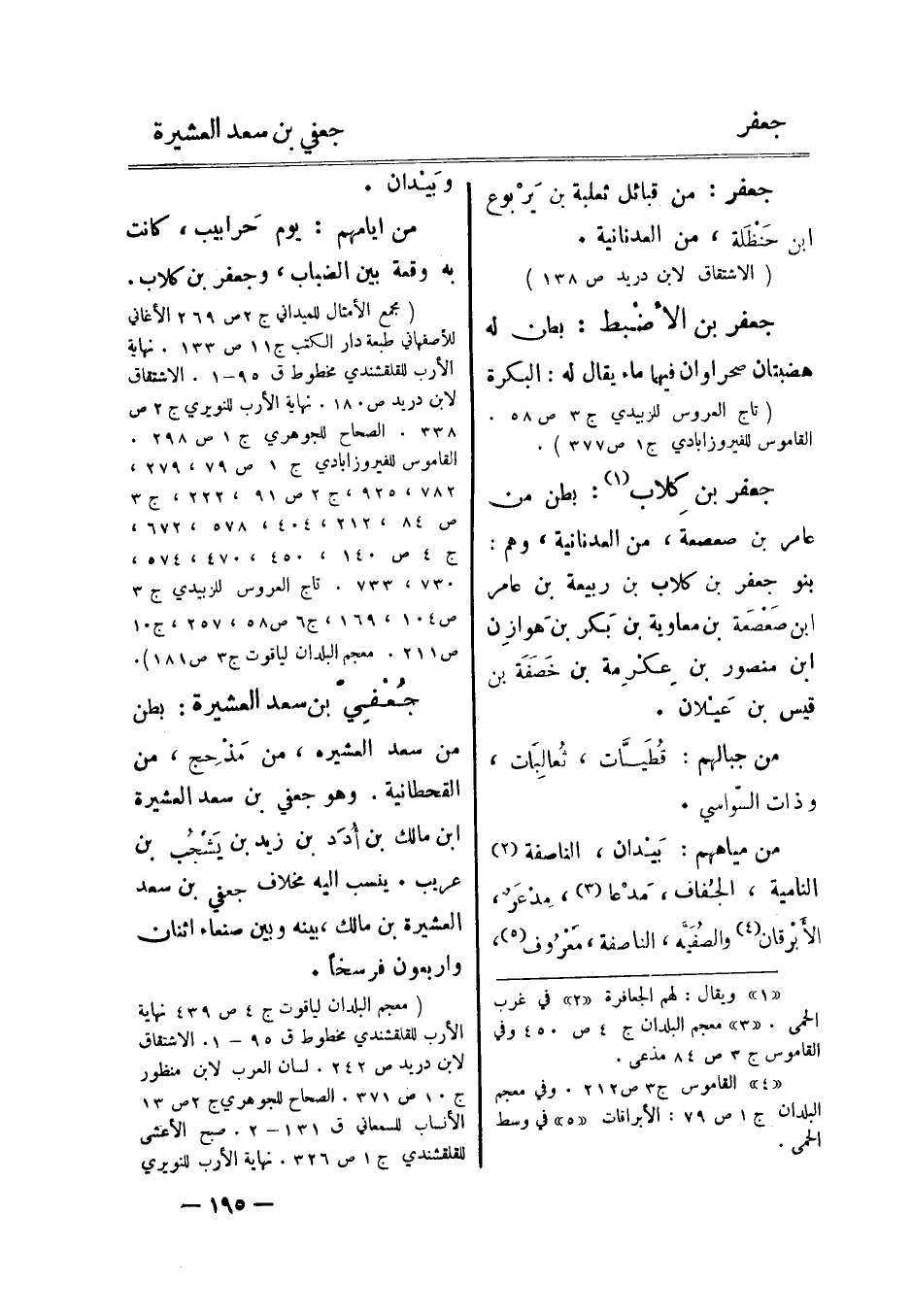 القاموس للفيروزآبادي ج 1 ص 79، 279، 782، 925، ج 2 ص 91، 222، ج 3 ص 84، 212، 404، 578، 672، ج 4 ص 140، 450، 470، 574، 730، 733. تاج العروس للزبيدي ج 3 ص 104، 169، ج 6 ص 58، 257، ج 10 ص 211. معجم البلدان لياقوت ج 3 ص 181) .