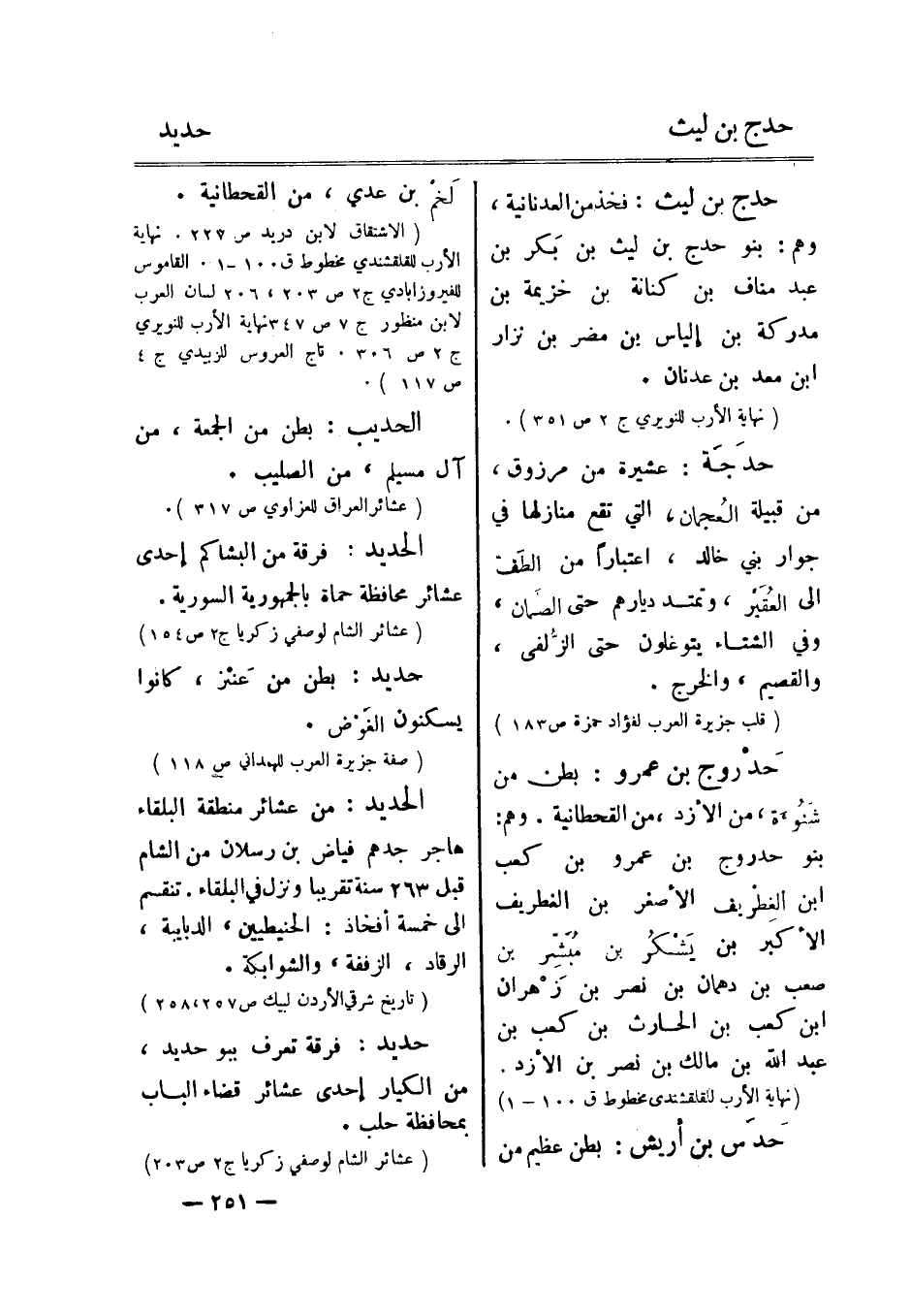 (الاشتقاق لابن دريد ص 223. نهاية الأرب للقلقشندي مخطوط ق 100- 1. القاموس للفيروزآبادي ج 2 ص 203، 206 لسان العرب لابن منظور ج 7 ص 347 نهاية الأرب للنويري ج 2 ص 306. تاج العروس للزبيدي ج 4 ص 117) .