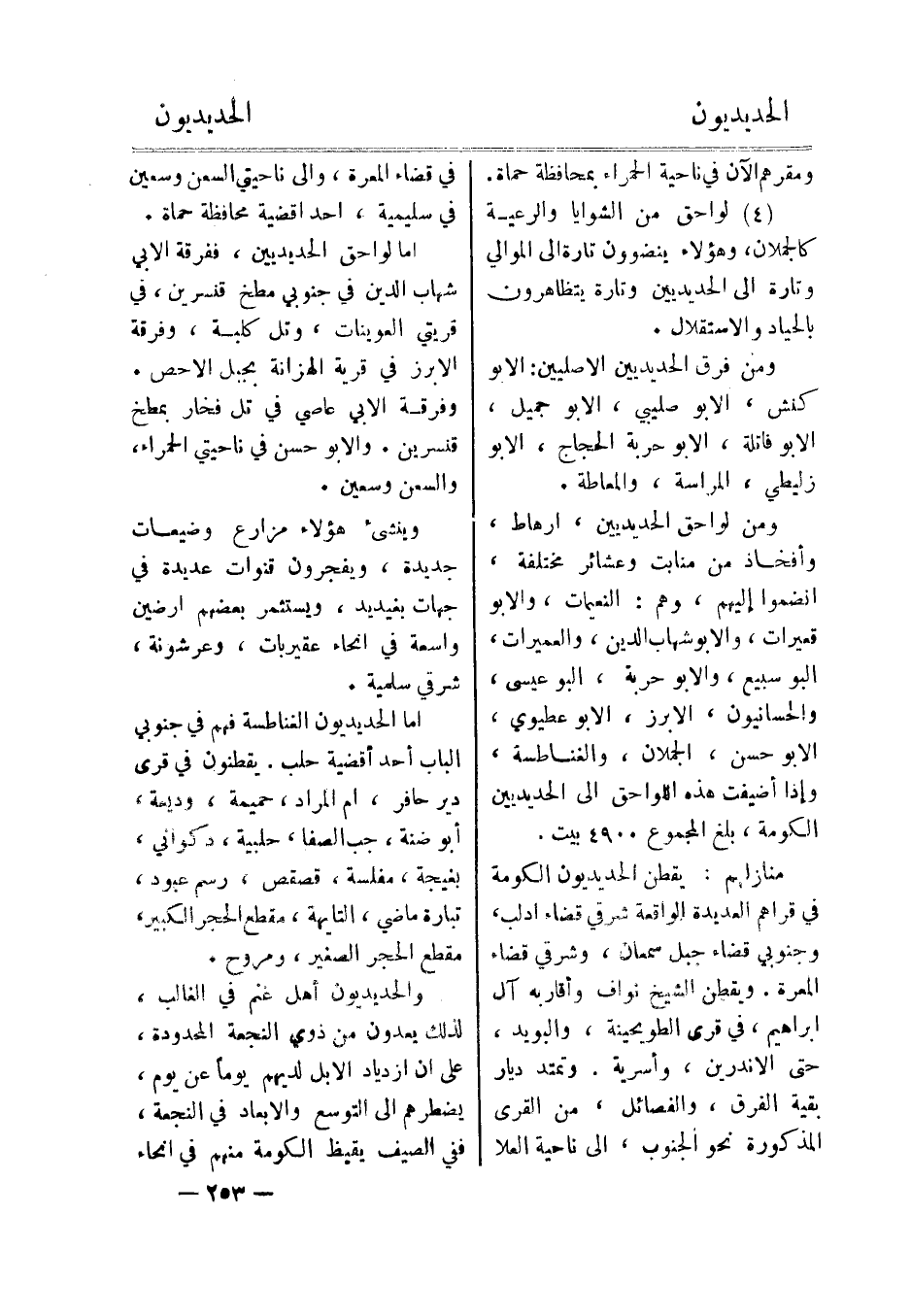 وينشئ هؤلاء مزارع وضيعات جديدة، ويفجرون قنوات عديدة في جهات بغيديد، ويستثمر بعضهم ارضين واسعة في أنحاء عقيربات، وعرشونة، شرقي سلمية.