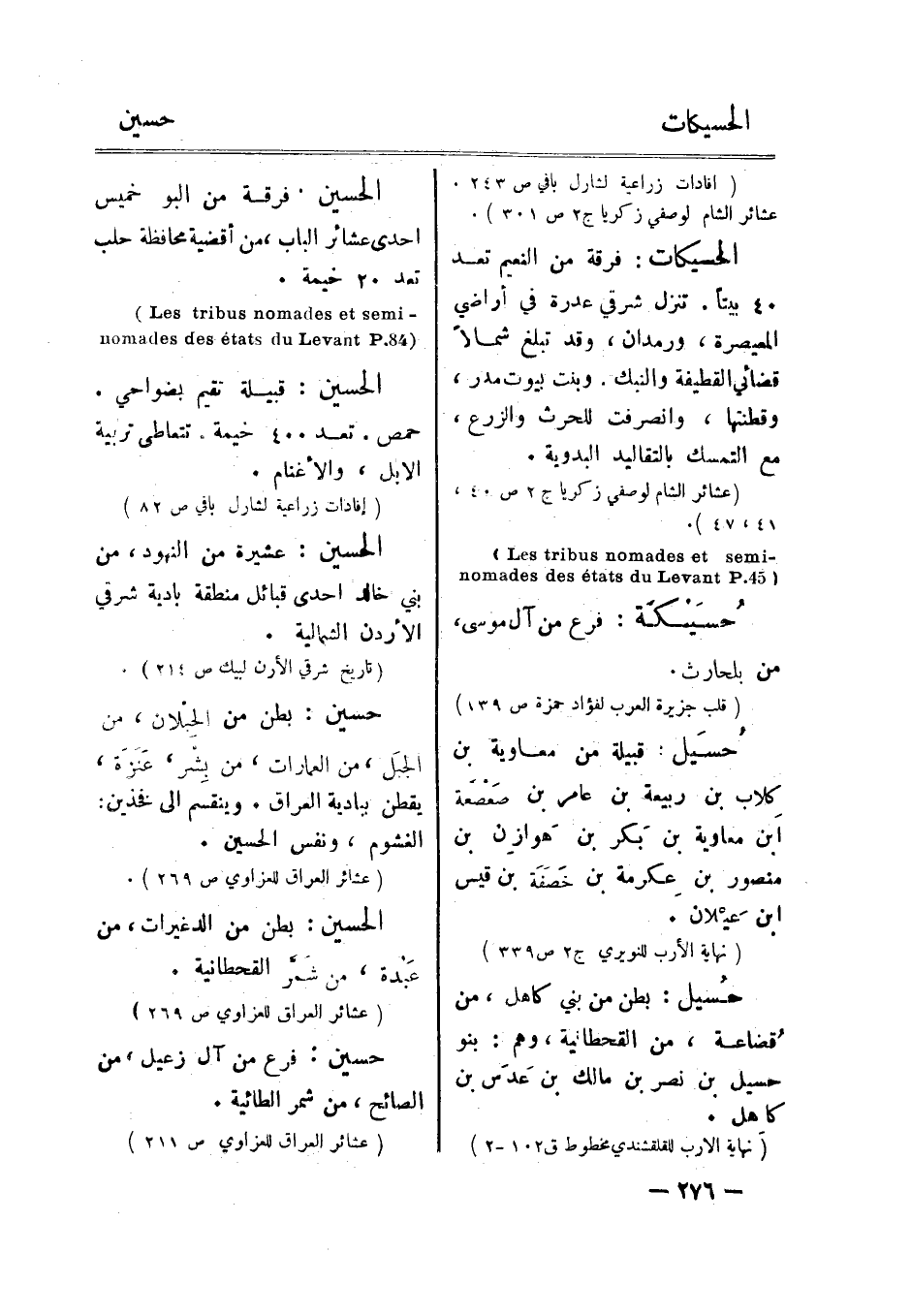 (عشائر الشام لوصفي زكريا ج 2 ص 40، 4، 47) .