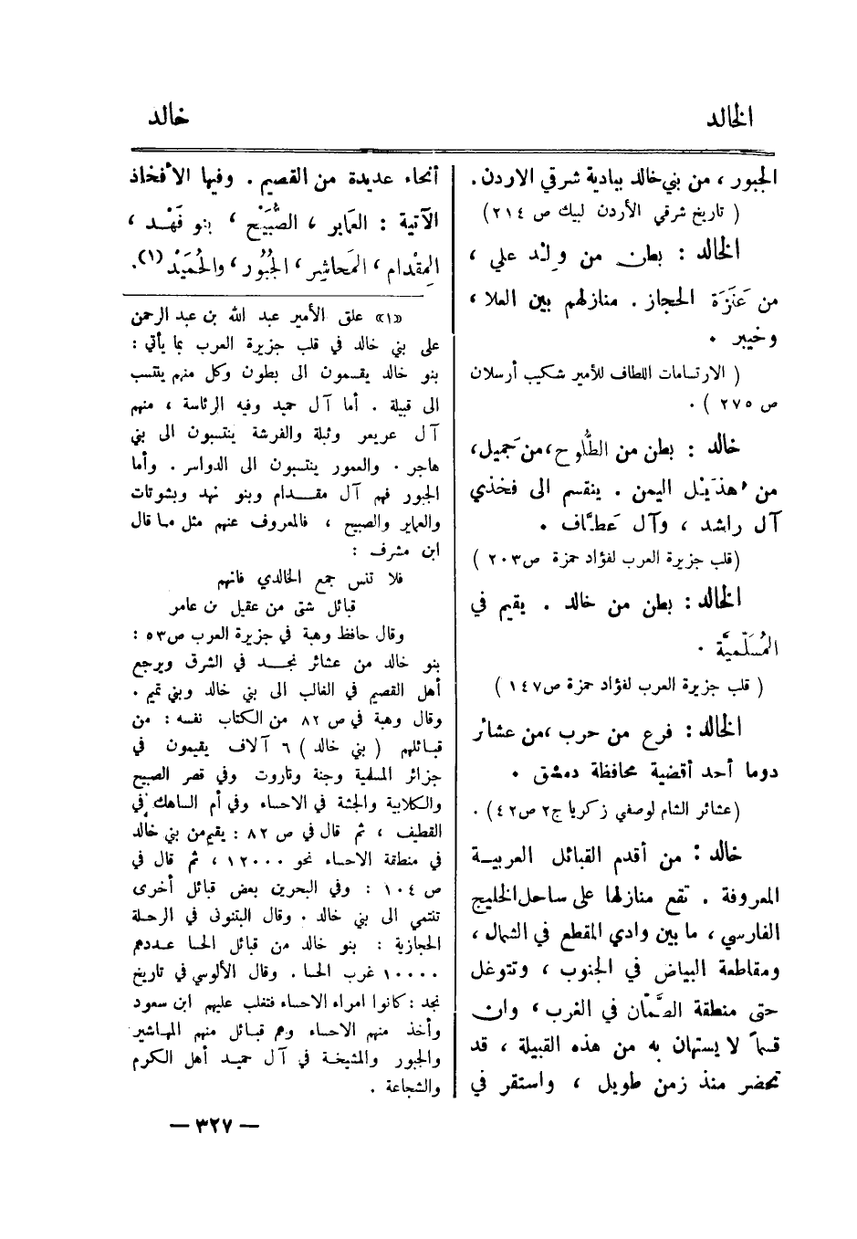 [1] علق الأمير عبد الله بن عبد الرحمن على بني خالد في قلب جزيرة العرب بما يأتي: