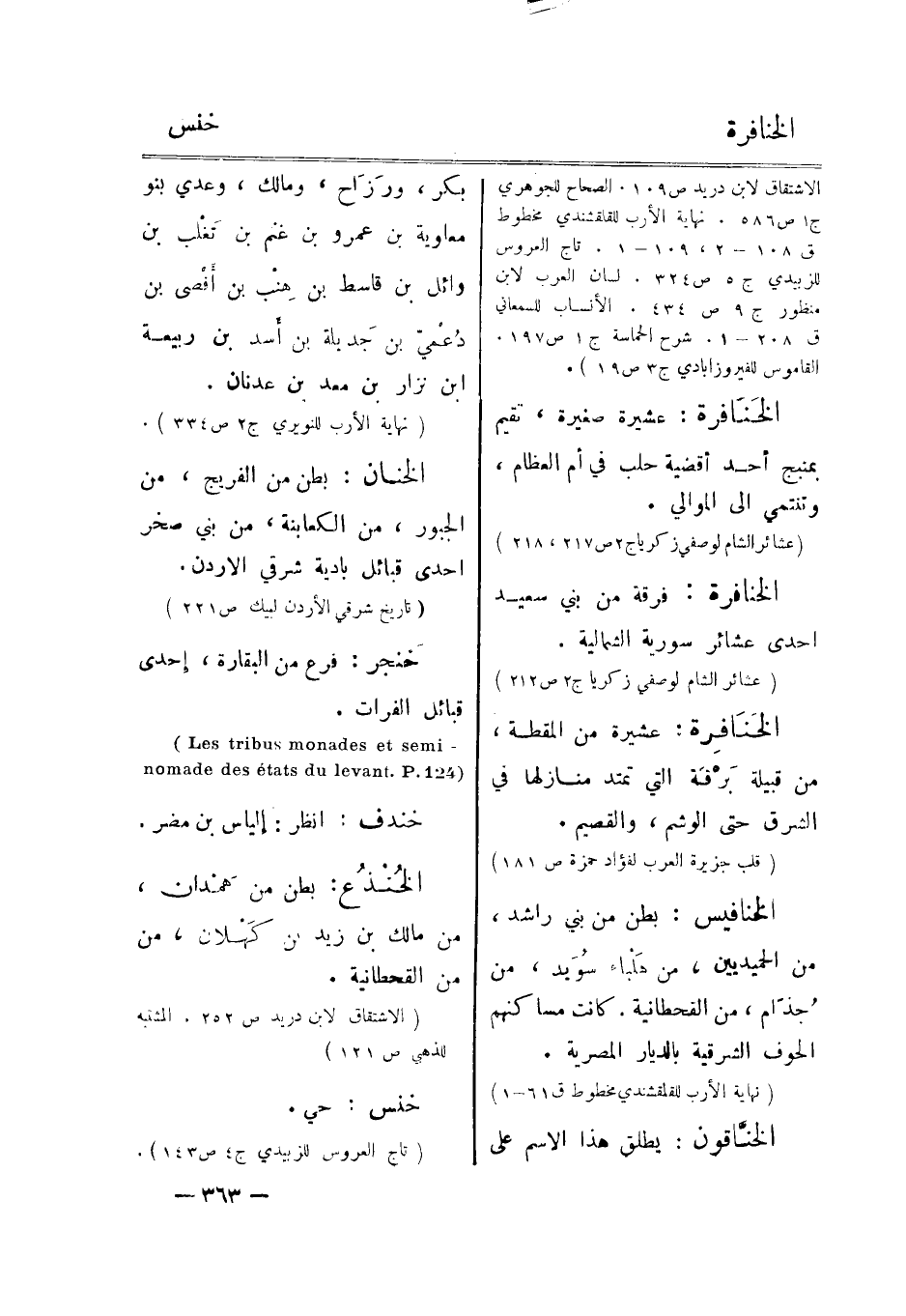 الاشتقاق لابن دريد ص 109. الصحاح للجوهري ج 1 ص 586. نهاية الأرب للقلقشندي مخطوط ق 108- 2، 109- 1. تاج العروس للزبيدي ج 5 ص 324. لسان العرب لابن منظور ج 9 ص 434. الأنساب للسمعاني ق 208- 1. شرح الحماسة ج 1 ص 197.