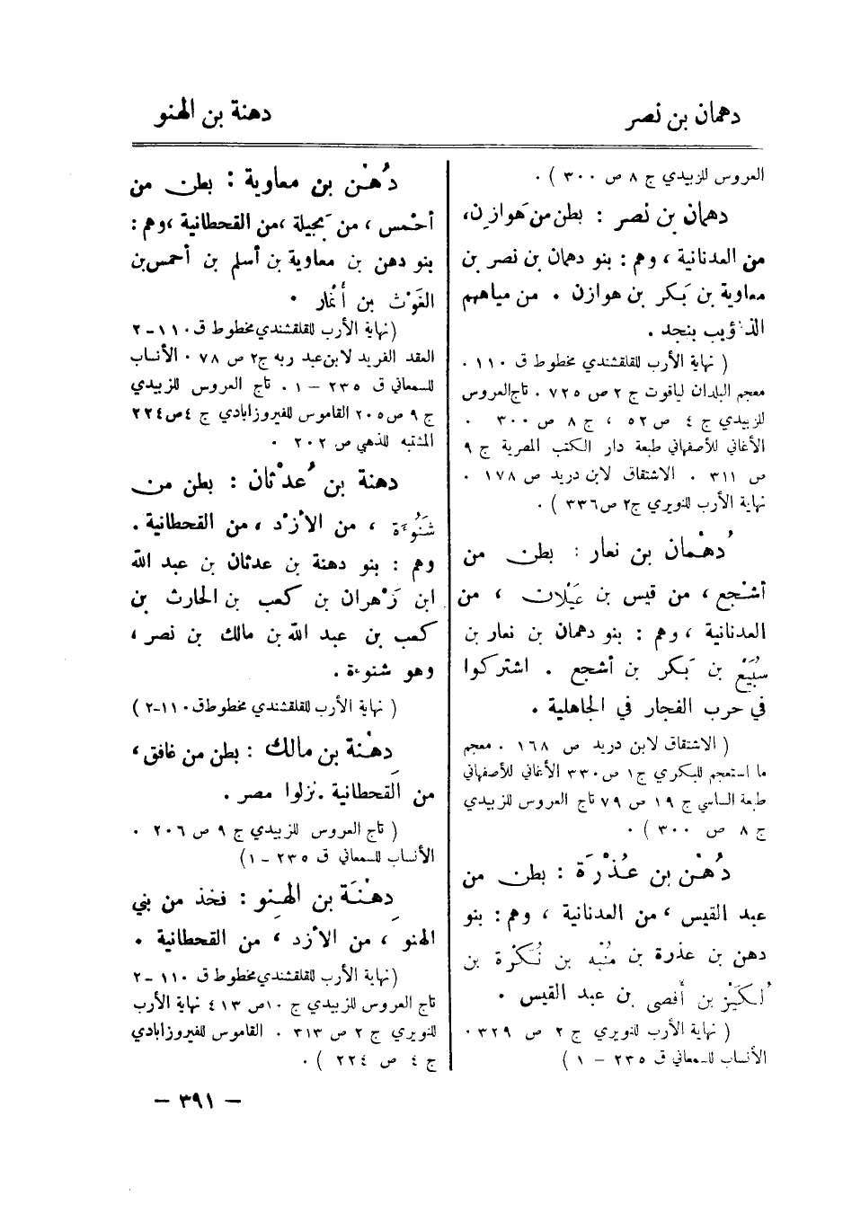 (نهاية الأرب للقلقشندي مخطوط ق 110- 2 العقد الفريد لابن عبد ربه ج 2 ص 78. الأنساب للسمعاني ق 235- 1. تاج العروس للزبيدي ج 9 ص 205 القاموس للفيروزآبادي ج 4 ص 224 المشتبه للذهبي ص 202.