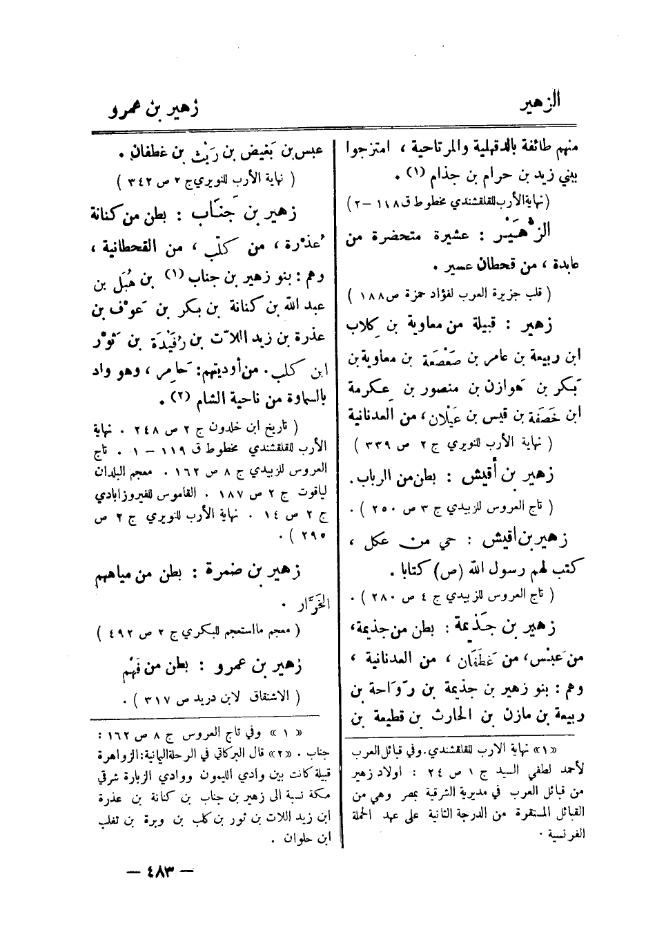 [1] نهاية الأرب للقلقشندي. وفي قبائل العرب لأحمد لطفي السيد ج 1 ص 24: أولاد زهير من قبائل العرب في مديرية الشرقية بمصر وهي من القبائل المستقرة. من الدرجة الثانية على عهد الحملة الفرنسية.