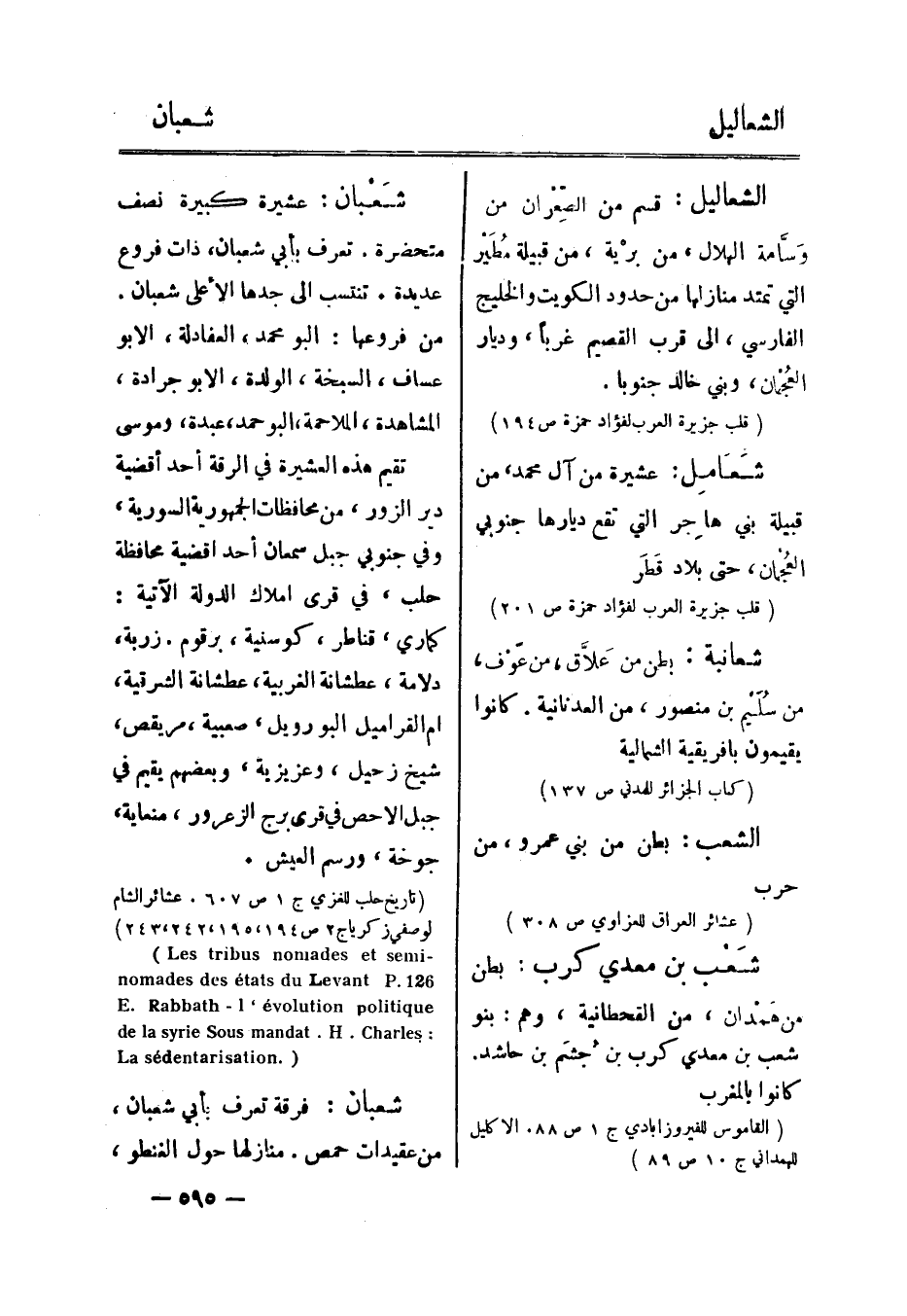 (تاريخ حلب للغزي ج 1 ص 607. عشائر الشام لوصفي زكريا ج 2 صasedentarisation.) asyrieSousmandat.H.Charles:E.Rabbath -l ,olutionpolitique desetatsduLevant.P.126) (busnomadesetsemi - (243،242،195،194
