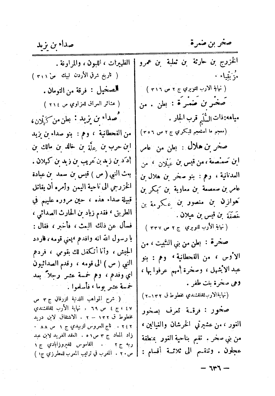 (شرح المواهب اللدنية للزرقاني ج 3 ص 47، ج 4، ص 69. نهاية الأرب للقلقشندي مخطوط ق 132- 2. الاشتقاق لابن دريد 242. تاج العروس للزبيدي ج 1 ص 88.