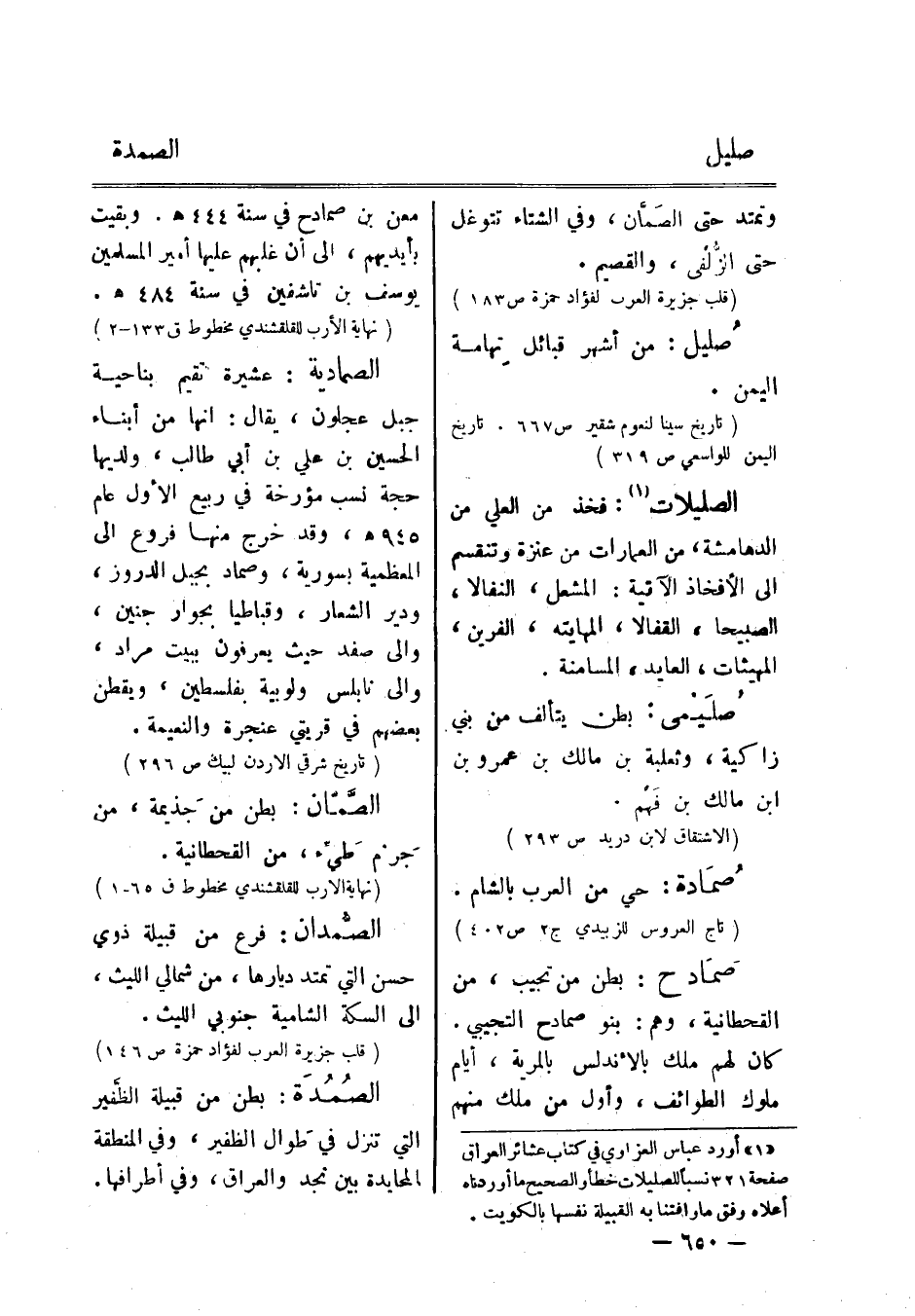 [1] أورد عباس العزاوي في كتاب عشائر العراق صفحة 321 نسبا للصليلات خطأ والصحيح ما أوردناه أعلاه وفق ما وافتنا به القبيلة نفسها بالكويت.